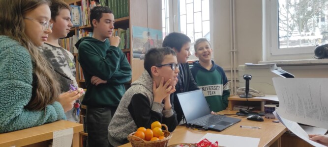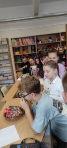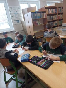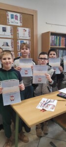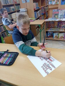 W bibliotece szkolnej odbył się konkurs ,,Z polszczyzną za pan brat”. Na uczniów odwiedzających krainę książek czekały łamańce językowe i zadania, w których mogli wykazać się znajomością poprawnej polszczyzny. Ochotnicy korzystali ze słowników frazeologicznych i wykonali plakaty reklamujące nasz język ojczysty. Wszyscy uczestnicy rozgrywek otrzymali pamiątkowe dyplomy, słodycze i owoce. Tytuł ,,Mistrz słowa” zdobyły: