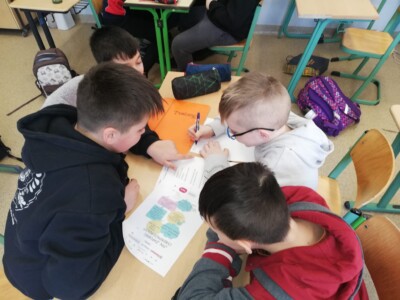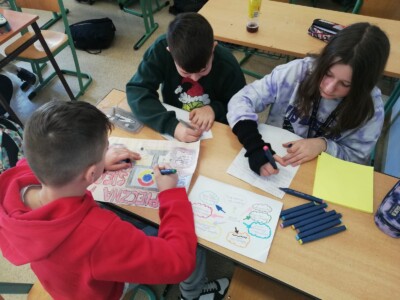 Uczniowie wszystkich klas uczestniczyli w różnorodnych formach zajęć. Wykonywali plakaty, tworzyli komiksy o bezpieczeństwie, uczyli się podstawowych zasad cyberhigieny. Brali udział w kolejnym webinarze Urzędu Komunikacji Elektronicznej pt. ,,Chroń swoje dane w sieci”. Każde ze spotkań rozpoczynało się od krótkiego wprowadzenia, dotyczącego znaczenia bezpieczeństwa w Internecie. Następnie uczniowie, pracując w małych grupach, wykonywali swoje prace.