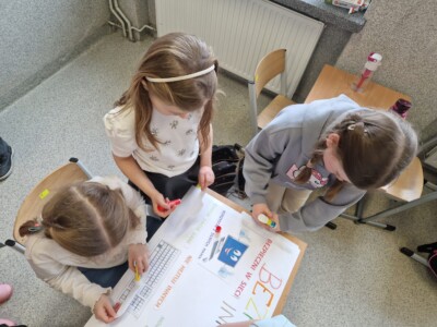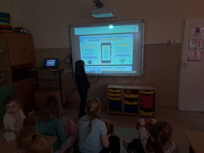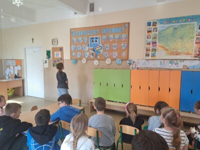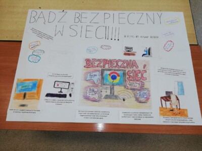 Świetlica szkolna również przyłączyła się do akcji. Celem przeprowadzonych zajęć było uświadomienie uczniom zarówno korzyści, jak i zagrożeń związanych z wirtualnym światem oraz nauczenie ich, jak unikać niebezpieczeństw. Podczas zajęć szczególną uwagę poświęcono zagadnieniu netykiety, czyli zasad kulturalnego i bezpiecznego zachowania w sieci. W trakcie spotkań uczniowie mieli także okazję zgłębić temat korzyści i zagrożeń związanych z Internetem. Z jednej strony, omówiono pozytywne aspekty, takie jak dostęp do wiedzy, możliwość komunikacji z rówieśnikami z różnych zakątków świata oraz kreatywne spędzanie czasu. Z drugiej natomiast, dzieci zostały ostrzeżone przed zagrożeniami, takimi jak cyberprzemoc, uzależnienie od Internetu oraz ryzyko kontaktu z nieodpowiednimi treściami. W celu utrwalenia zdobytej wiedzy powstała w świetlicy gazetka, zawiera najważniejsze informacje oraz wskazówki dotyczące bezpiecznego korzystania z Internetu.