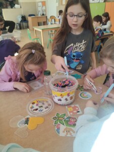 19 marca nasza świetlica zamieniła się w prawdziwą pracownię artystyczną! Nasi uczniowie mieli okazję stworzyć własne, niepowtarzalne breloczki i zawieszki z kolorowych koralików Pyssla. Była to nie tylko doskonała zabawa, ale także cenne ćwiczenie rozwijające koordynację oraz wspierające motorykę małą.