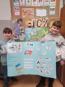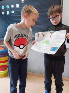 Podczas pracy uczniowie nie tylko rozwijali swoją wiedzę, ale również uczyli się współpracy, dzielili obowiązki i wzajemnie wspierali się w przygotowaniach. Dzieci z ogromnym zaangażowaniem podeszły do zadania, wykazując się kreatywnością i ambicją. Powstały piękne i bardzo starannie wykonane prace, które wzbudziły ogromne zainteresowanie wśród rówieśników. Prezentacje były pełne kolorowych ilustracji, map, zdjęć i interesujących faktów, które uczniowie przedstawili w ciekawy sposób. Była to inspirująca lekcja edukacji przyrodniczej, która na długo pozostanie w ich pamięci!