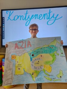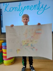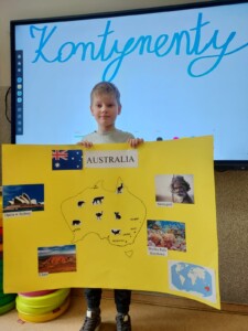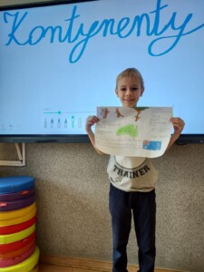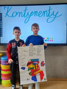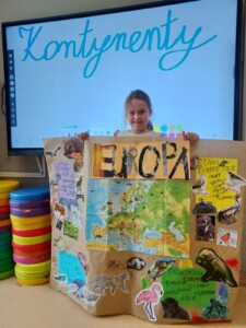 Uczniowie klasy 2B wzięli udział w niezwykłym projekcie edukacyjnym pt. „Kontynenty”, podczas którego indywidualnie lub w grupach zaprezentowali całej klasie wybrane części świata. Projekt spotkał się z dużym entuzjazmem.