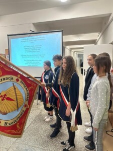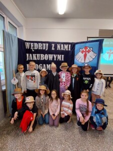 Podczas apelu, uczniowie i nauczyciele poznali historię dróg jakubowych oraz genezę nazwy szkoły. A to nie koniec niespodzianek! Goście specjalni, Pani Krystyna Zabrocka i Urszula Serewis, opowiedzieli o swoich niezwykłych wędrówkach szlakami jakubowymi.