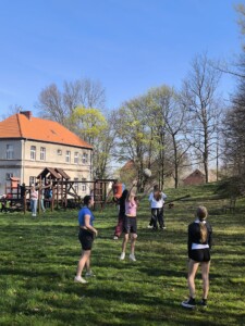 16 kwietnia 2025r. uczniowie klas 1b i 7b wyruszyli wspólnie na Wielkanocną Misję Zajączka – wyjątkową grę terenową, która połączyła edukację z zabawą i integracją międzypokoleniową.