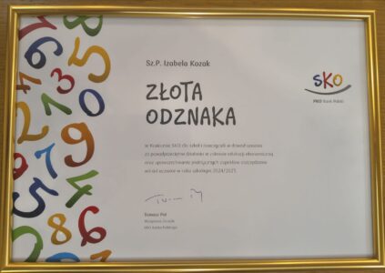 17 października 2025 roku w wyjątkowej atmosferze Biblioteki Narodowej w Warszawie odbyła się uroczysta gala programu SKO PKO Banku Polskiego, połączona z jubileuszem 90-lecia działalności Szkolnych Kas Oszczędności. W wydarzeniu uczestniczyli opiekunowie SKO z całej Polski, wśród których znalazła się pani Izabela Kozak, która odebrała Złotą Odznakę w Konkursie SKO dla szkół i nauczycieli w edycji 2024/2025. To prestiżowe wyróżnienie jest