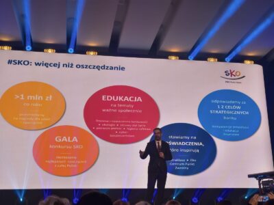 Klienta PKO Banku Polskiego oraz pan Bartosz Błaszczyk, Dyrektor Departamentu Sprzedaży Detalicznej PKO Banku Polskiego. Obaj podkreślili znaczenie programu SKO w kształtowaniu przedsiębiorczych, świadomych i