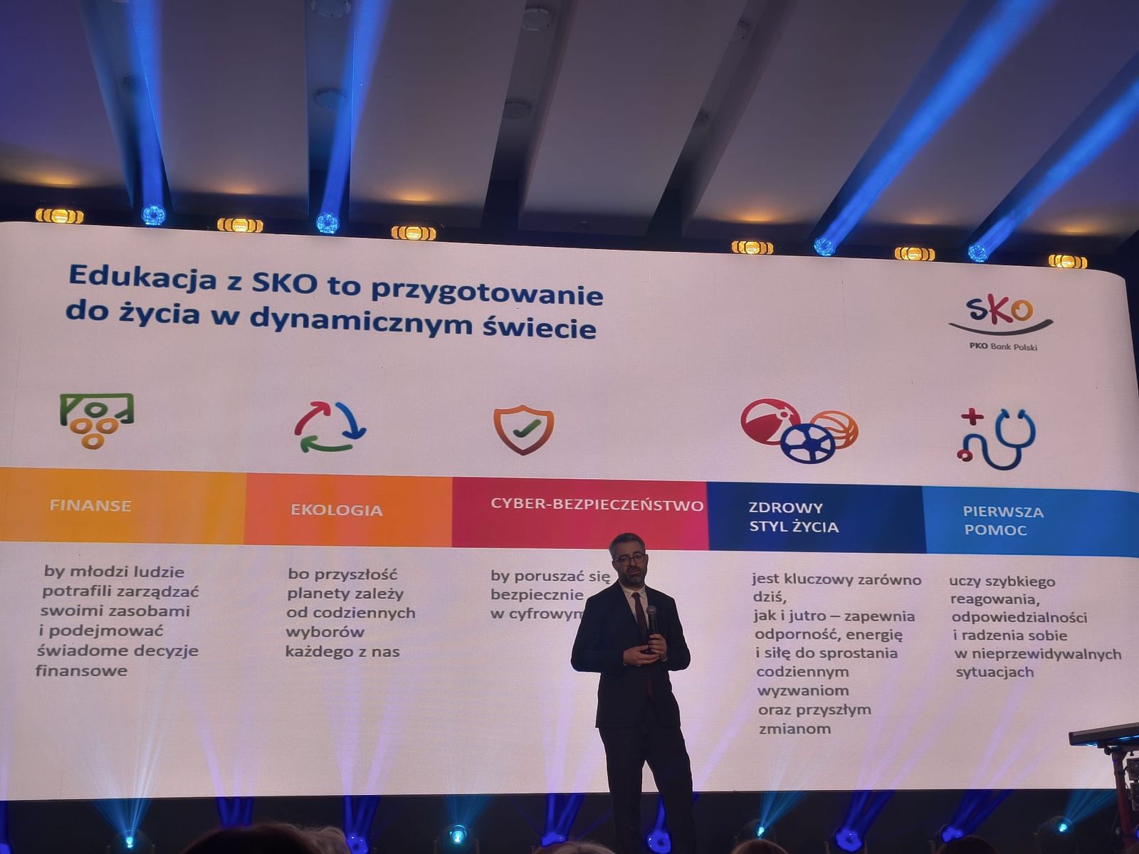 Klienta PKO Banku Polskiego oraz pan Bartosz Błaszczyk, Dyrektor Departamentu Sprzedaży Detalicznej PKO Banku Polskiego. Obaj podkreślili znaczenie programu SKO w kształtowaniu przedsiębiorczych, świadomych i