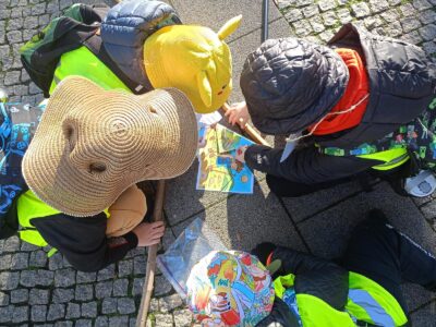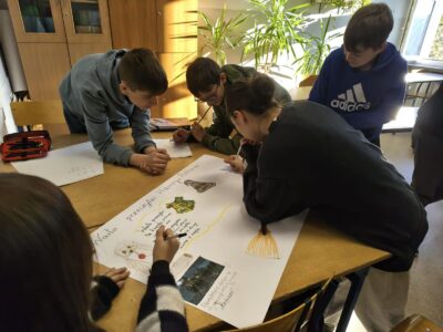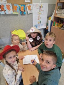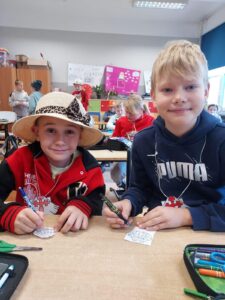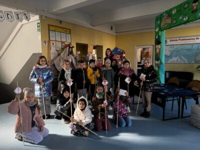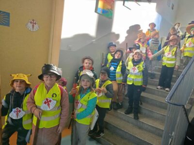 Uczniowie, niczym prawdziwi pielgrzymi, rozpoczęli dzień od przygotowania atrybutów wędrowca – muszelek, kijów i kapeluszy. Następnie zaznaczali na mapach miasta i kraje, przez które przebiegają  drogi jakubowe, tworzyli przewodniki po  państwach, które wcześniej wylosowali oraz plakaty promujące wybrane miejsca. Wspólna praca pozwoliła im nie tylko poznać geografię i kulturę Europy, ale też poczuć ducha współpracy.