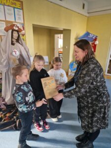 Na zakończenie uroczystości wszystkie grupy otrzymały pamiątkowe dyplomy za aktywny udział w obchodach Święta Szkoły.