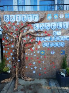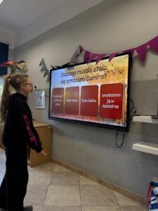 W kolejnych etapach uczniowie rozwiązywali quiz wiedzy za pomocą kodu QR, dopasowywali cytaty do emocji, a na muszelkach i serduszkach zapisywali swoje refleksje dotyczące wędrówek. Wszystkie te przemyślenia zawisły na symbolicznym Drzewie Wartości, które przypominało, że każda podróż – nawet ta symboliczna – uczy nas czegoś nowego o świecie i o nas samych.