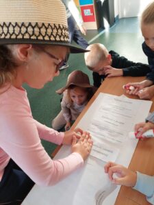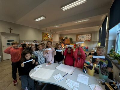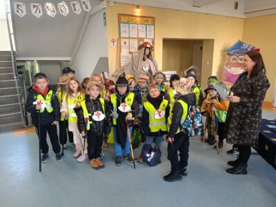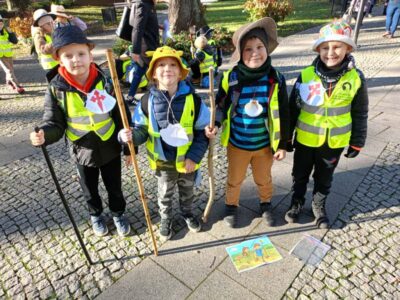 W tym roku mieliśmy również zaszczyt gościć  grupę 5 i integracyjną z Przedszkola nr 3 w Lubaniu, które z zapałem dołączyły do naszego wspólnego świętowania, rozwiązując zadania i poznając tajemnice pielgrzymowania. Każda klasa, podobnie jak mali goście, otrzymała na początku dnia paszport pielgrzyma, w którym odnotowywano wykonane zadania.