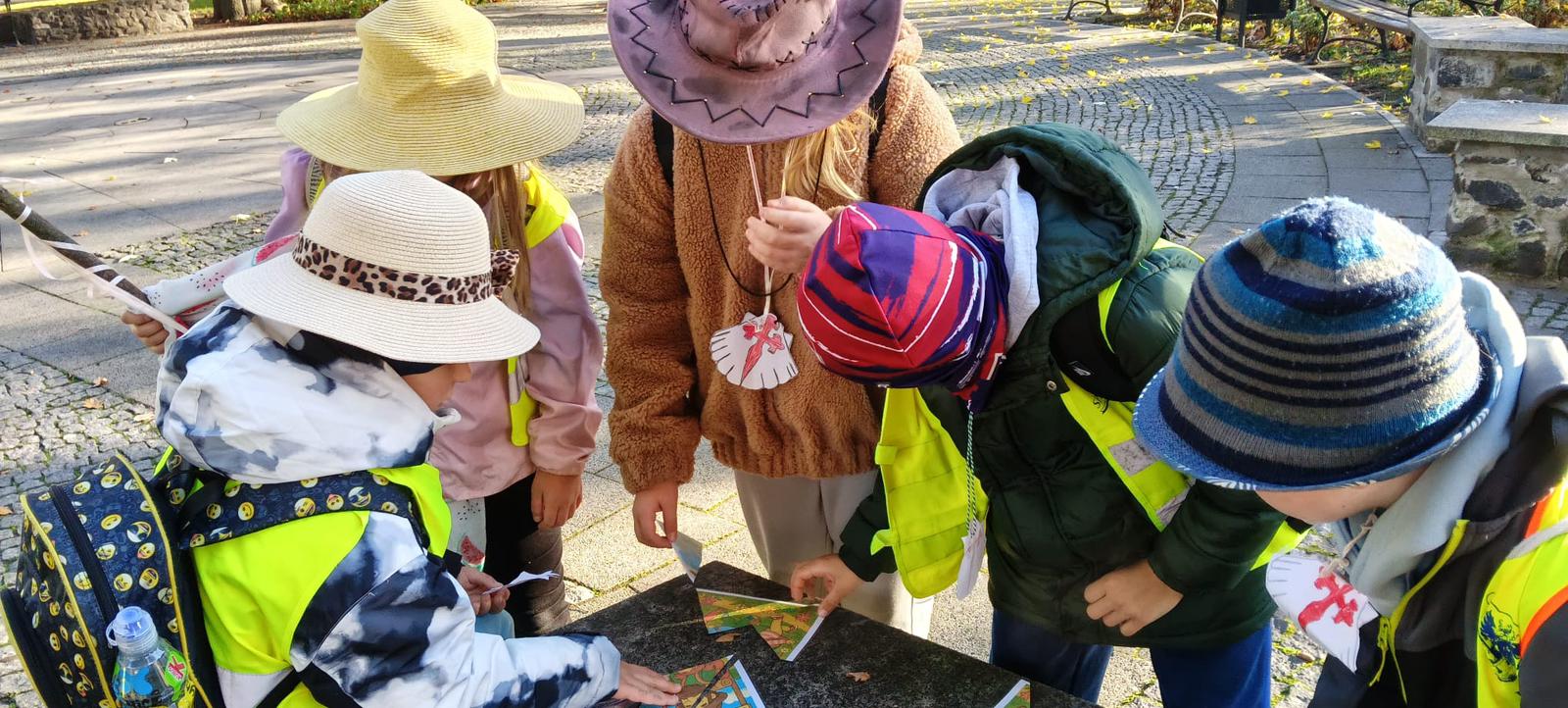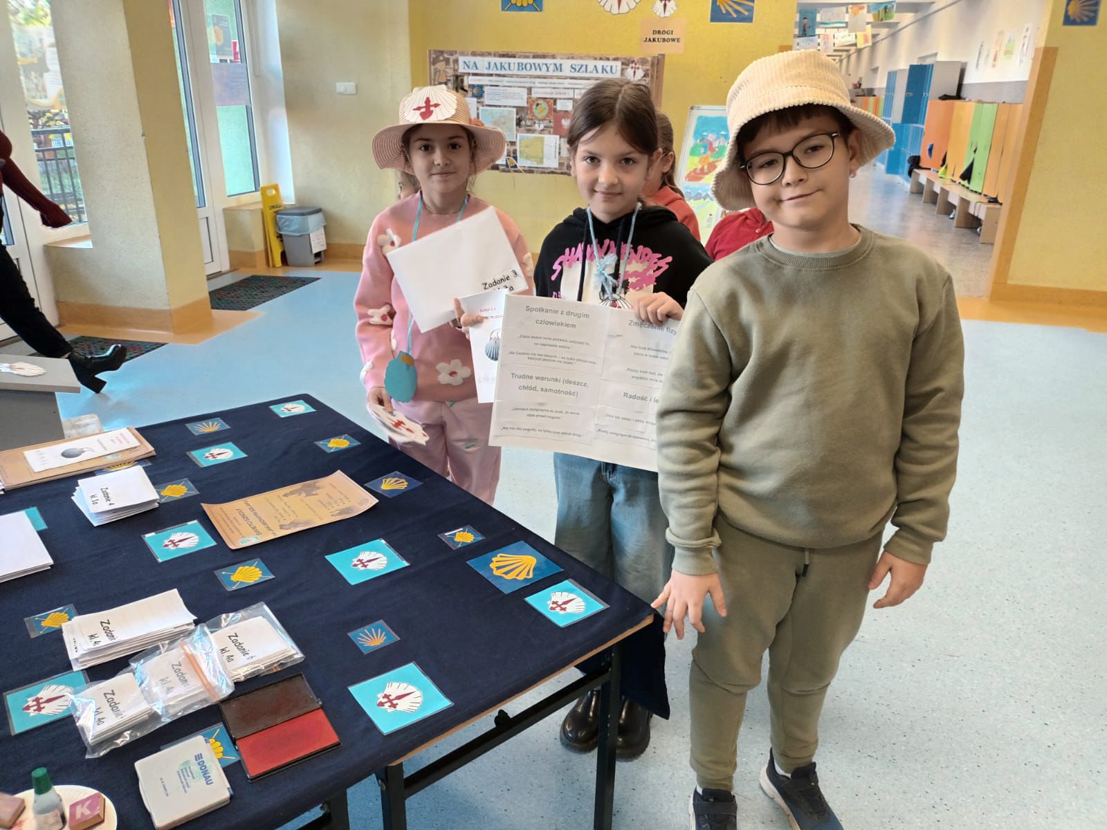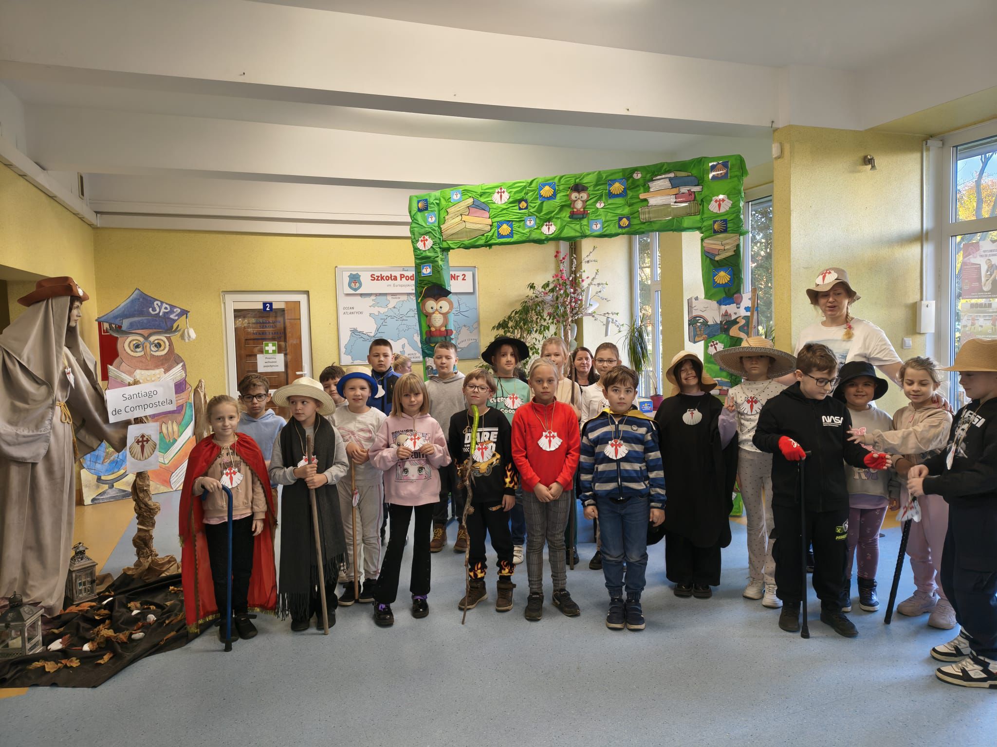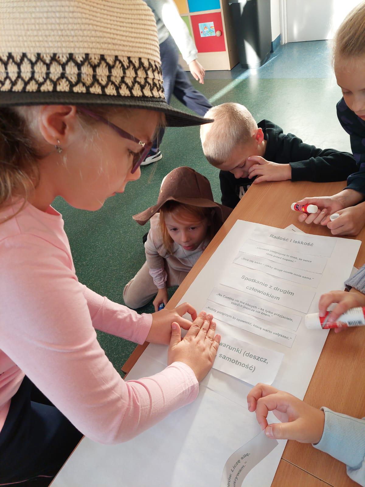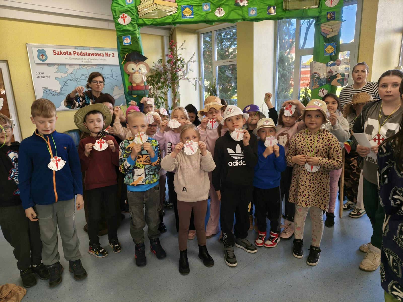 Uczniowie, niczym prawdziwi pielgrzymi, rozpoczęli dzień od przygotowania atrybutów wędrowca – muszelek, kijów i kapeluszy. Następnie zaznaczali na mapach miasta i kraje, przez które przebiegają  drogi jakubowe, tworzyli przewodniki po  państwach, które wcześniej wylosowali oraz plakaty promujące wybrane miejsca. Wspólna praca pozwoliła im nie tylko poznać geografię i kulturę Europy, ale też poczuć ducha współpracy.