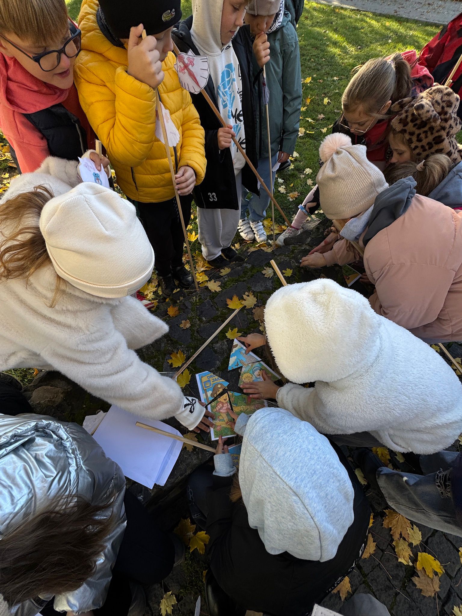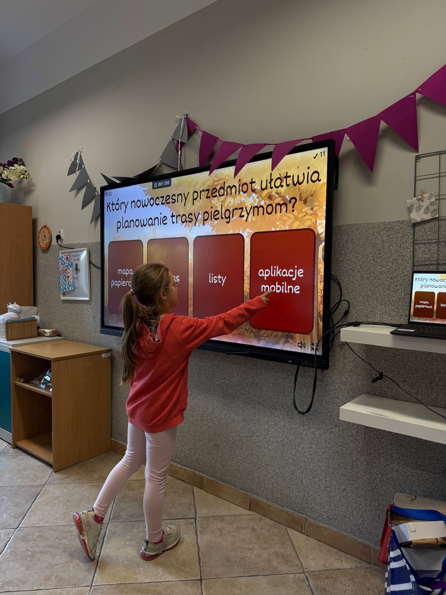W kolejnych etapach uczniowie rozwiązywali quiz wiedzy za pomocą kodu QR, dopasowywali cytaty do emocji, a na muszelkach i serduszkach zapisywali swoje refleksje dotyczące wędrówek. Wszystkie te przemyślenia zawisły na symbolicznym Drzewie Wartości, które przypominało, że każda podróż – nawet ta symboliczna – uczy nas czegoś nowego o świecie i o nas samych.