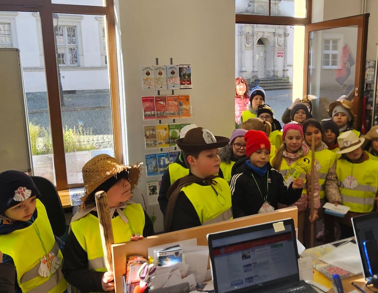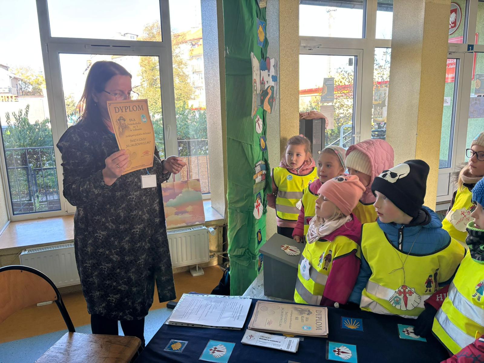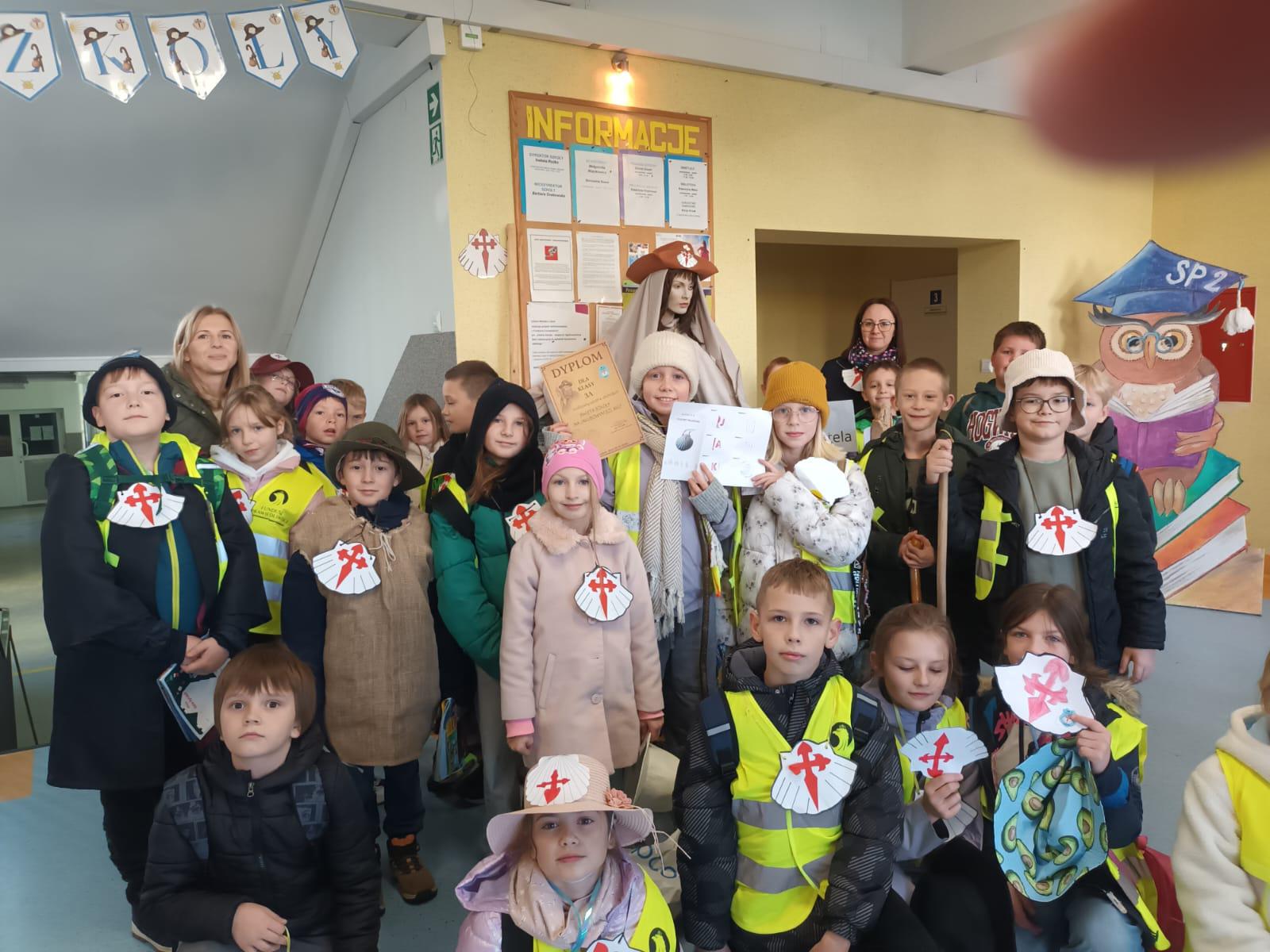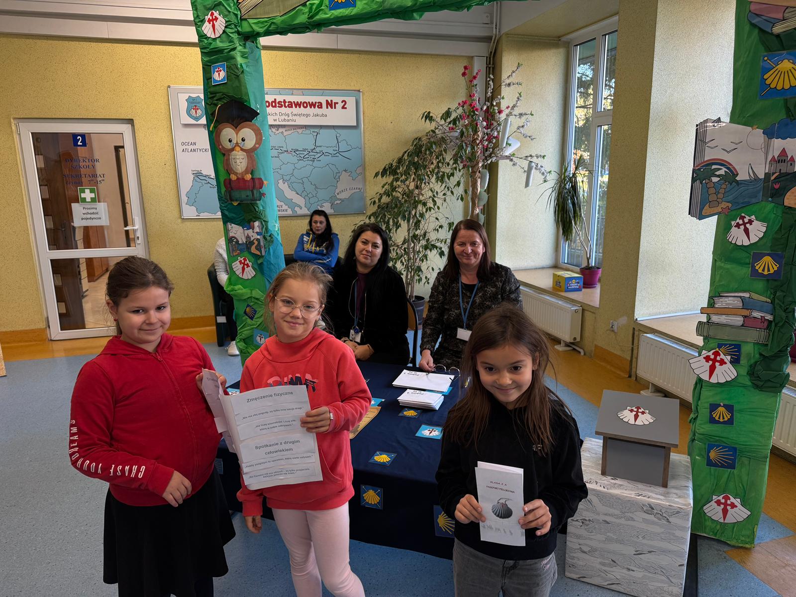 W tym roku mieliśmy również zaszczyt gościć  grupę 5 i integracyjną z Przedszkola nr 3 w Lubaniu, które z zapałem dołączyły do naszego wspólnego świętowania, rozwiązując zadania i poznając tajemnice pielgrzymowania. Każda klasa, podobnie jak mali goście, otrzymała na początku dnia paszport pielgrzyma, w którym odnotowywano wykonane zadania.