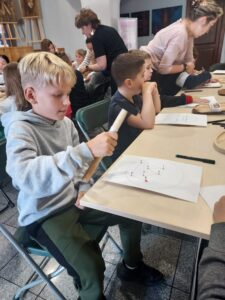 Dzięki jasnym i przystępnym wyjaśnieniom uczniowie z łatwością zrozumieli zasady pracy i z ogromnym zaangażowaniem tworzyli własne dzieła. Podczas warsztatów panowała twórcza, radosna atmosfera, a dzieci były zachwycone nowo poznaną techniką! 🧵✨
