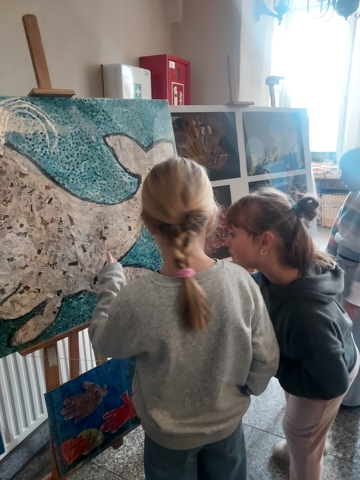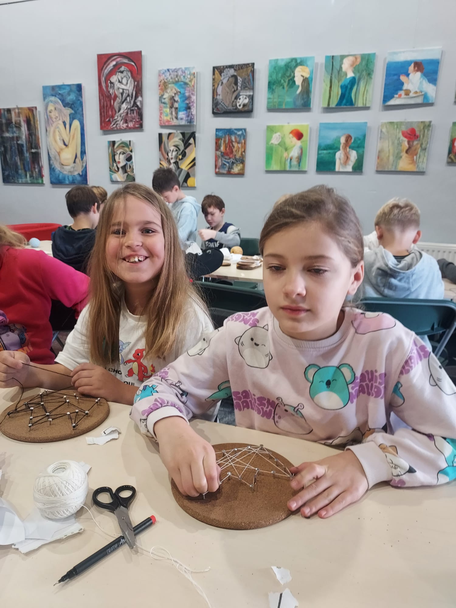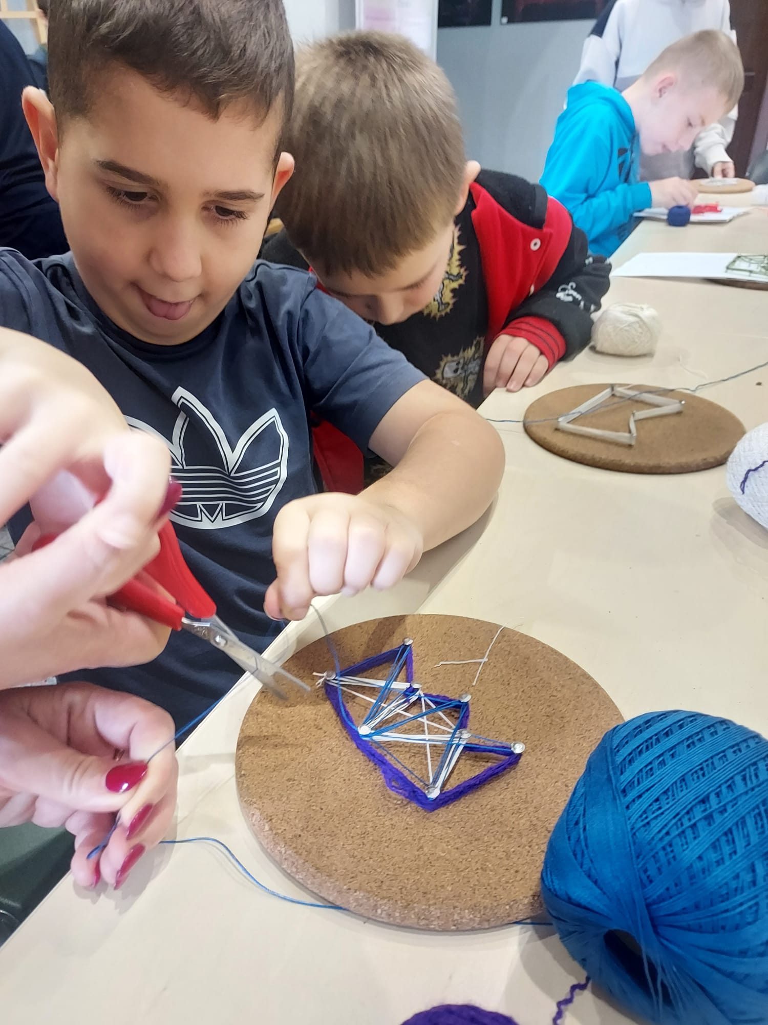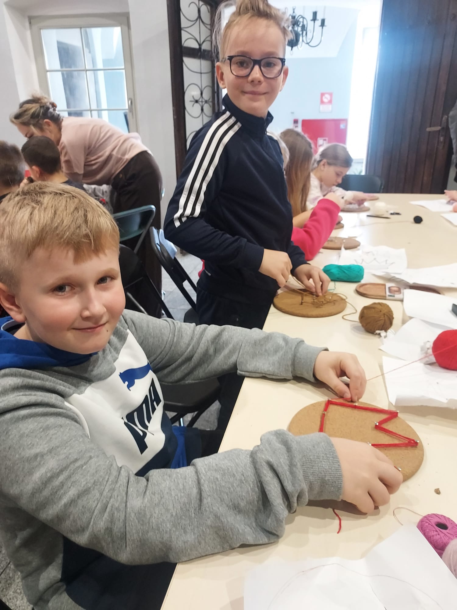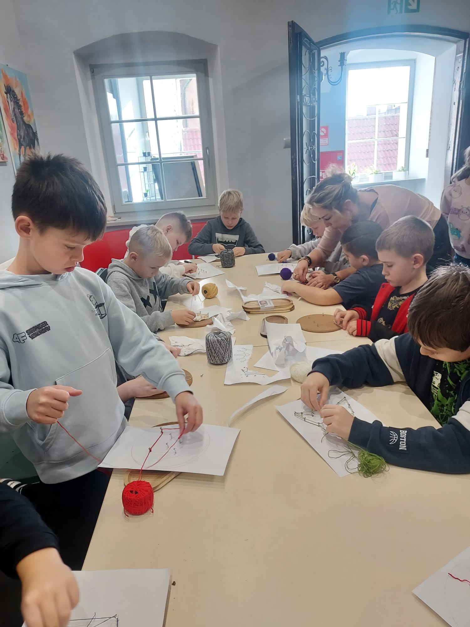 Dzięki jasnym i przystępnym wyjaśnieniom uczniowie z łatwością zrozumieli zasady pracy i z ogromnym zaangażowaniem tworzyli własne dzieła. Podczas warsztatów panowała twórcza, radosna atmosfera, a dzieci były zachwycone nowo poznaną techniką! 🧵✨