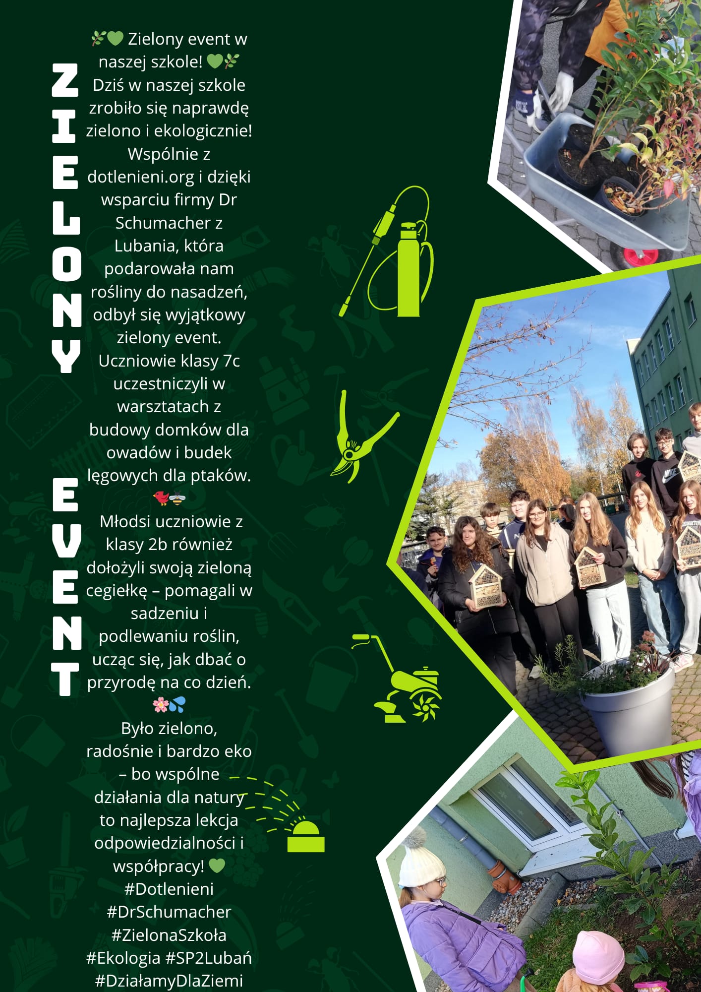 Dziś w naszej szkole zrobiło się naprawdę zielono i ekologicznie! Wspólnie z dotlenieni.org i dzięki wsparciu firmy Dr Schumacher z Lubania, która podarowała nam rośliny do nasadzeń, odbył się wyjątkowy zielony event.