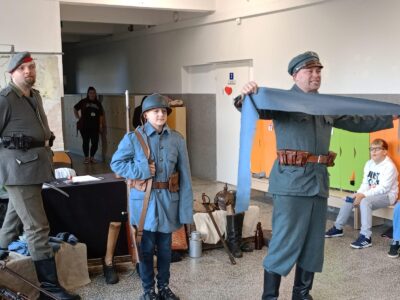 Autentyczne stroje z epoki, rekwizyty wojskowe, a nawet repliki broni sprawiły, że uczniowie mogli poczuć atmosferę tamtych wydarzeń i zrozumieć, jak wiele poświęceń kosztowała Polaków wolność.