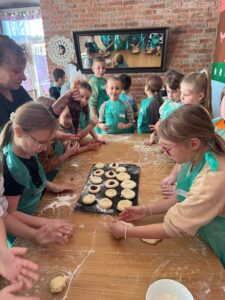 Uczniowie klas I b i II c wzięli udział w warsztatach kulinarnych, które odbyły się w Babim Lecie. Podczas warsztatów uczniowie mieli okazję zapoznać się z etapami przygoowania drożdżowego ciasta. Każdy mógł samodzielnie przygotować drożdżowe bułeczki z ulubionym nadzieniem. Zajęcia zakończyły się wspólną degustacją, podczas której uczniowie mogli ocenić swoje kulinarne umiejętności. Warsztaty były nie tylko świetną okazją do nauki i rozwijania pasji kulinarnej, ale również do integracji klas.