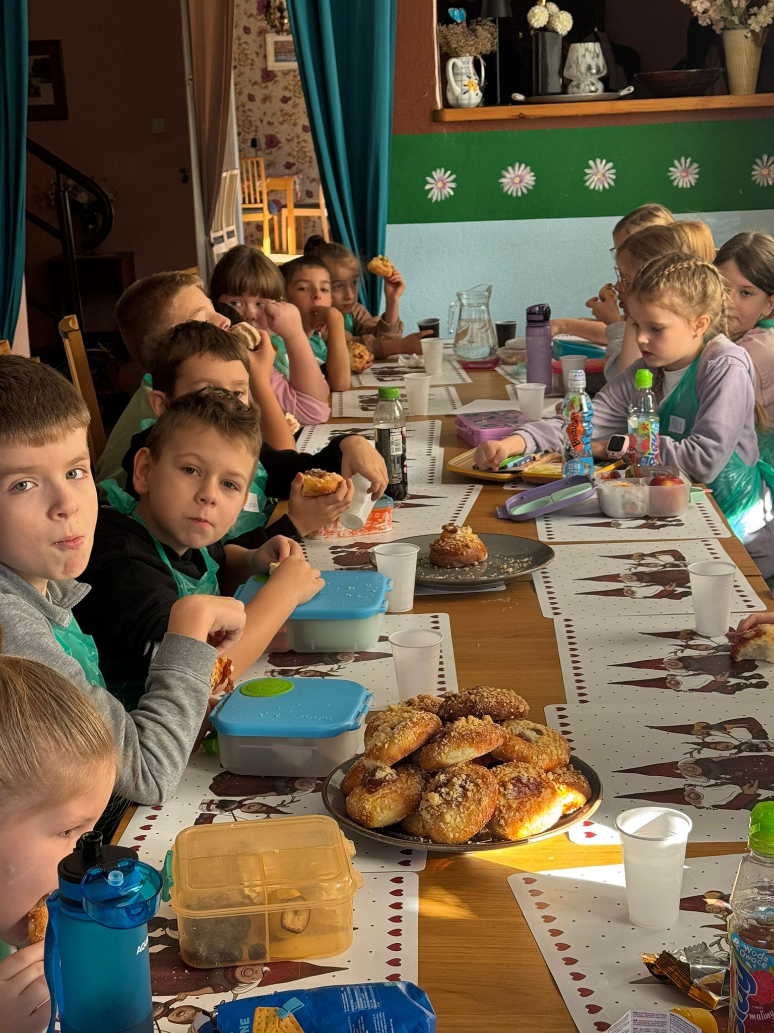 Uczniowie klas I b i II c wzięli udział w warsztatach kulinarnych, które odbyły się w Babim Lecie. Podczas warsztatów uczniowie mieli okazję zapoznać się z etapami przygoowania drożdżowego ciasta. Każdy mógł samodzielnie przygotować drożdżowe bułeczki z ulubionym nadzieniem. Zajęcia zakończyły się wspólną degustacją, podczas której uczniowie mogli ocenić swoje kulinarne umiejętności. Warsztaty były nie tylko świetną okazją do nauki i rozwijania pasji kulinarnej, ale również do integracji klas.