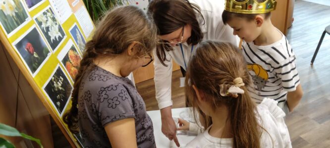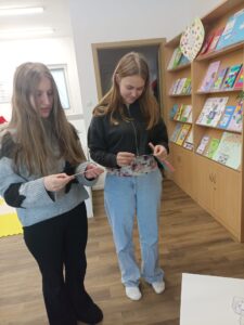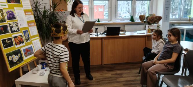 W piątek biblioteka szkolna na jeden dzień zamieniła się w niezwykłą krainę andrzejkowych czarów. Uczniowie odwiedzający bibliotekę oraz dzieci ze świetlicy z radością odkrywały tajemnice przyszłości poprzez m.in. mowę kwiatów, znaczenie kolorów, losowanie symboli, numerologię oraz „szpilki prawdy”, które wzbudzały wiele emocji.