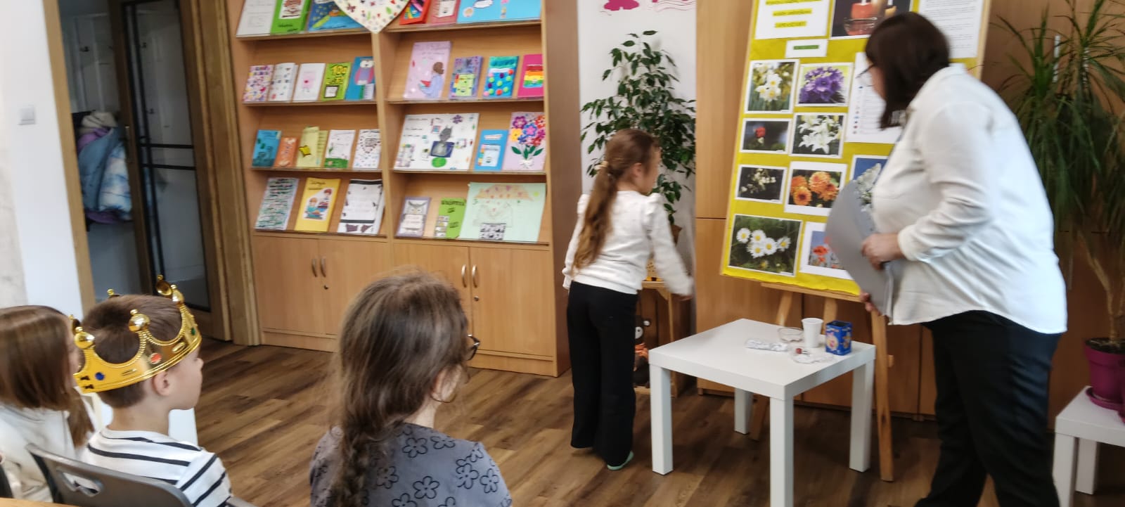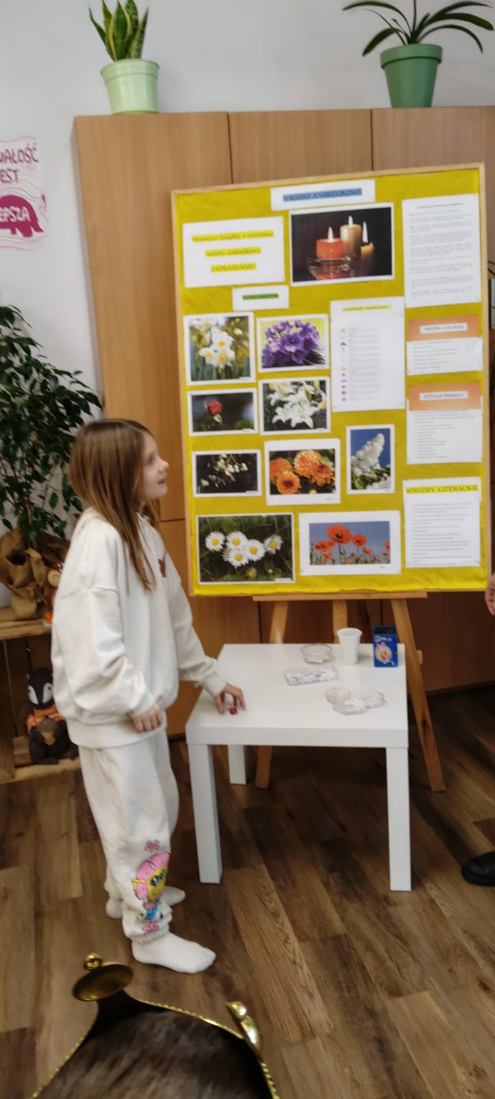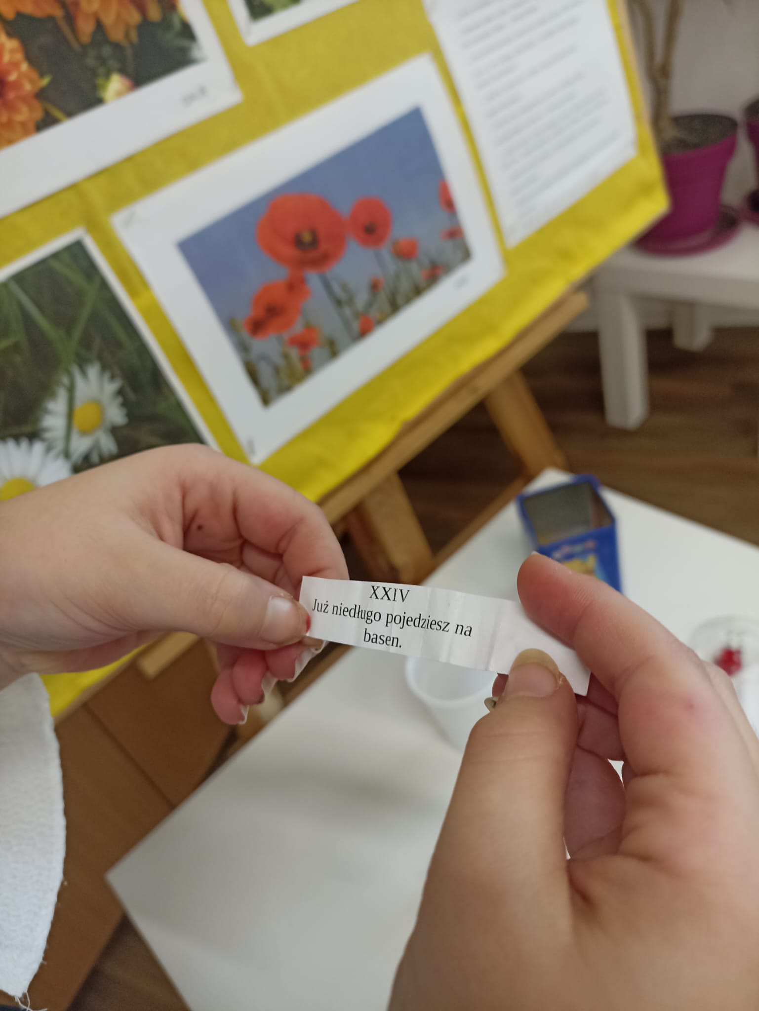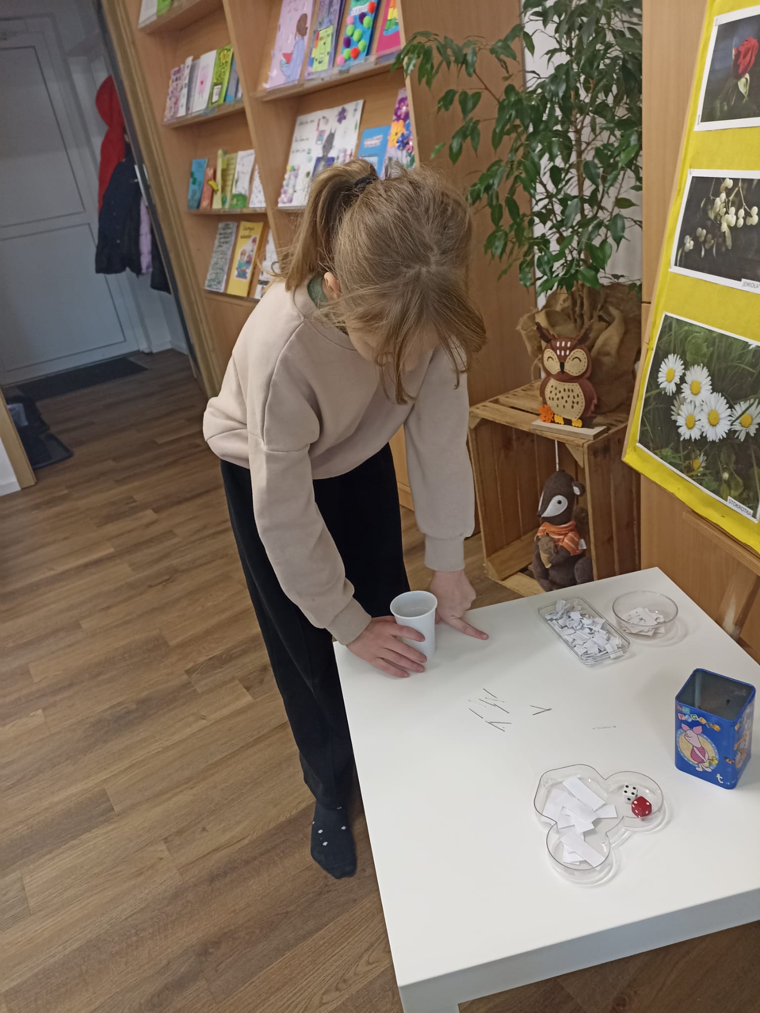 W piątek biblioteka szkolna na jeden dzień zamieniła się w niezwykłą krainę andrzejkowych czarów. Uczniowie odwiedzający bibliotekę oraz dzieci ze świetlicy z radością odkrywały tajemnice przyszłości poprzez m.in. mowę kwiatów, znaczenie kolorów, losowanie symboli, numerologię oraz „szpilki prawdy”, które wzbudzały wiele emocji.