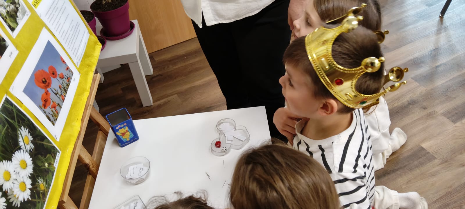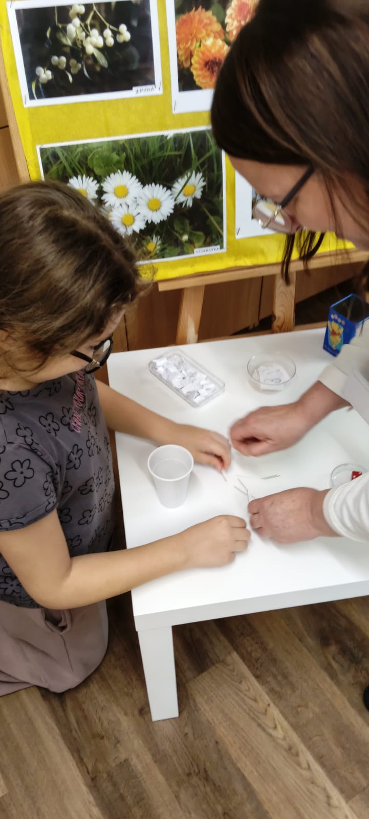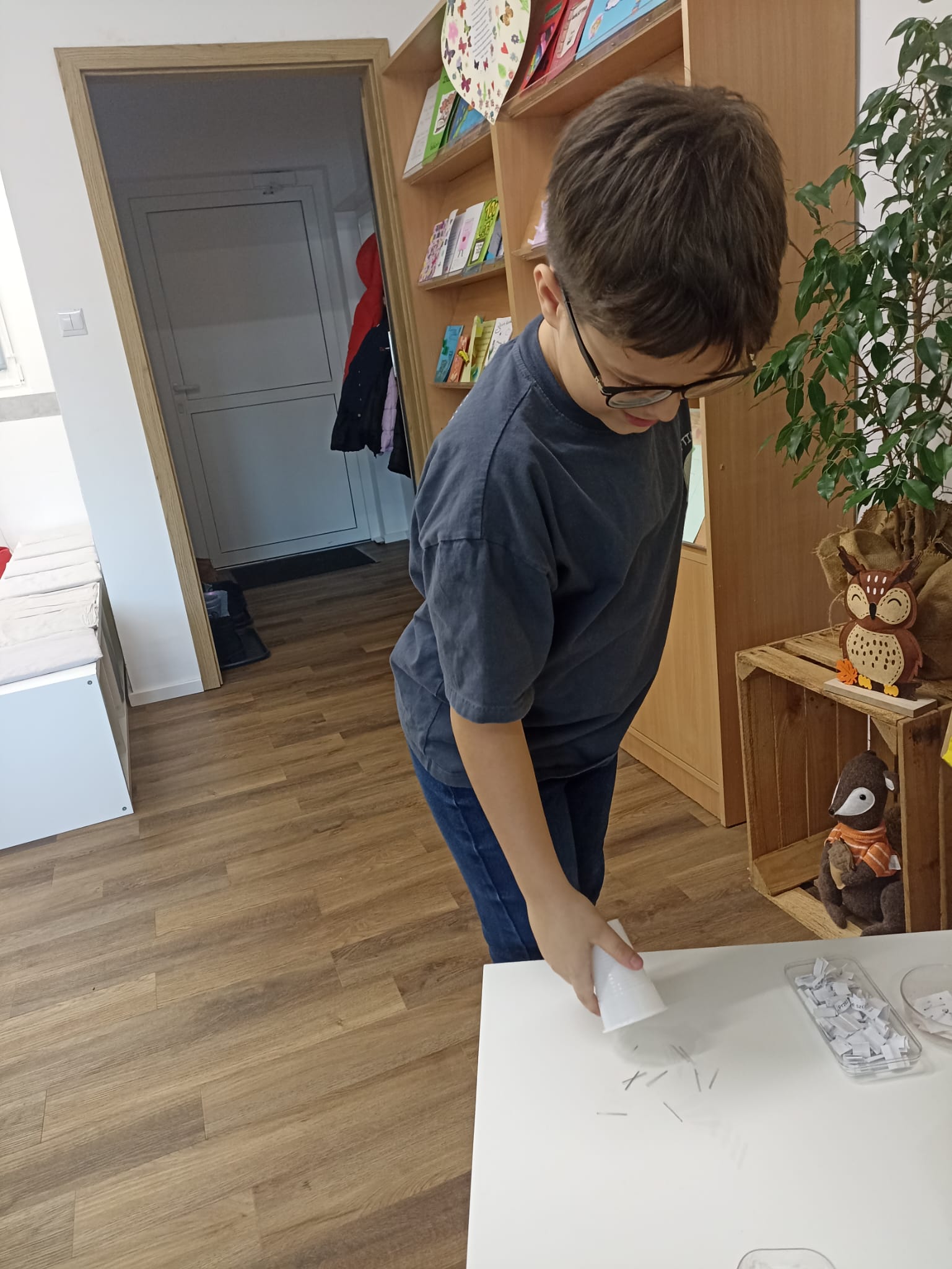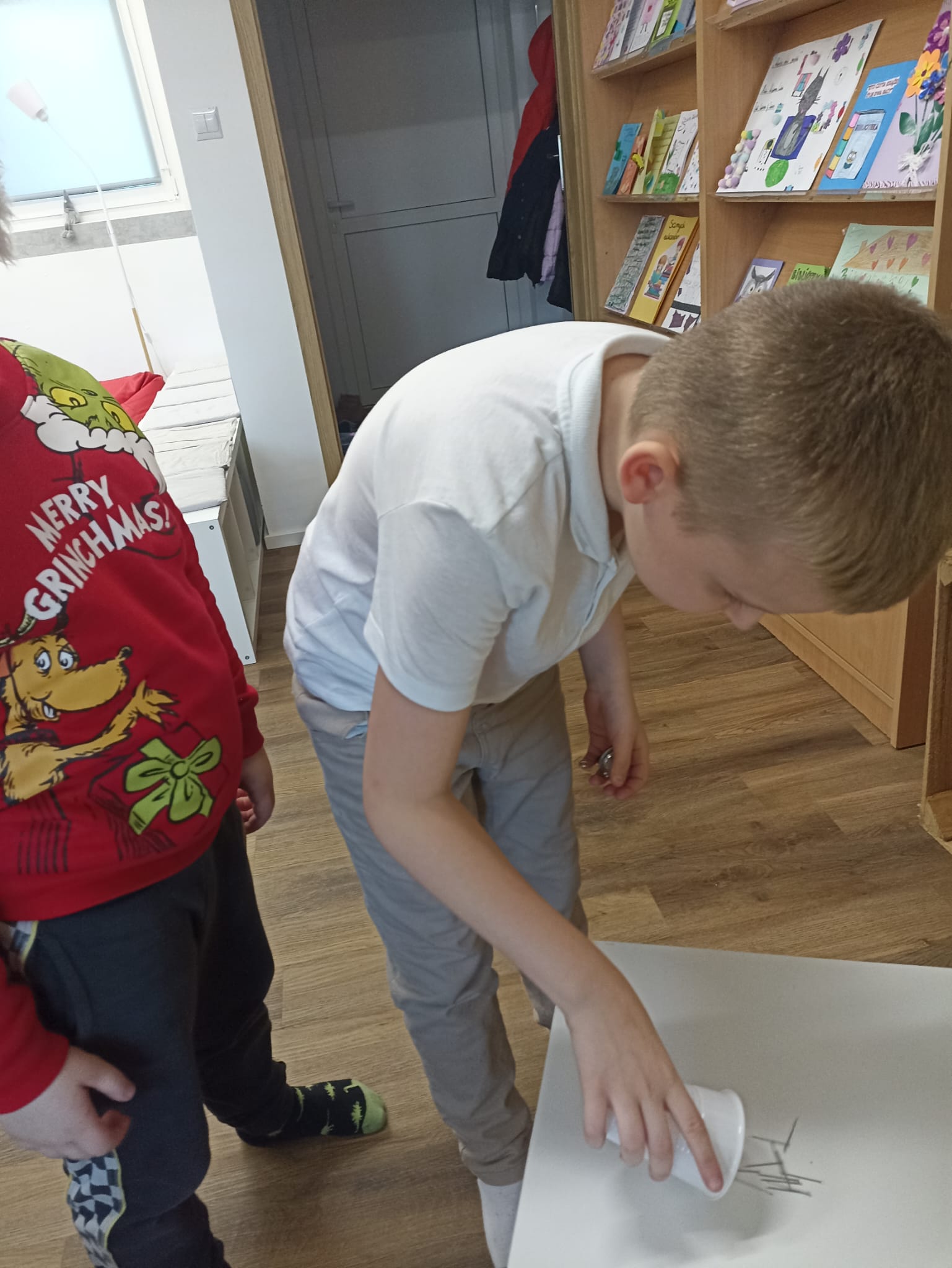 W piątek biblioteka szkolna na jeden dzień zamieniła się w niezwykłą krainę andrzejkowych czarów. Uczniowie odwiedzający bibliotekę oraz dzieci ze świetlicy z radością odkrywały tajemnice przyszłości poprzez m.in. mowę kwiatów, znaczenie kolorów, losowanie symboli, numerologię oraz „szpilki prawdy”, które wzbudzały wiele emocji.