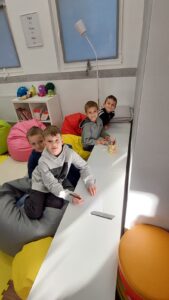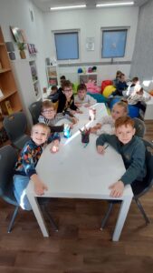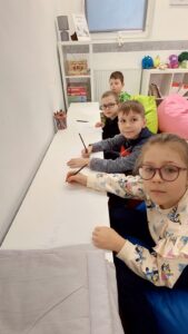 Dzieci chętnie wypowiadały się na temat dobroci i niesienia radości innym, a także z uśmiechem naśladowały charakterystyczne odgłosy Matyldy. Na zakończenie zajęć każdy uczeń przygotował pracę plastyczną — prezent dla wybranego zwierzęcia — który trafił do magicznego pudełka pełnego dobrych życzeń.