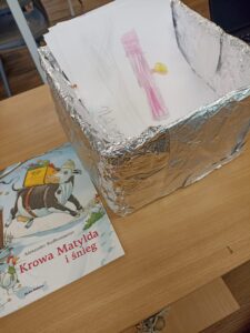 Podczas dzisiejszych warsztatów czytelniczych uczniowie klasy 1b wysłuchali opowiadania Alexandra Steffensmeiera „Krowa Matylda i śnieg”. Książka stała się doskonałym pretekstem do rozmowy o zwierzętach zimą, świątecznych prezentach i pomaganiu tym, którzy mogą potrzebować naszej troski — także zwierzakom.