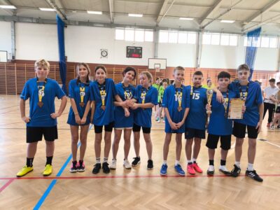 Drużyna w składzie: Wandycz Jakub, Sobota Kacper, Frankiewicz Oskar, Jaracz Antoni, Popławski Karol, Sikorska Zuzanna, Szczepańska Julia, Maras Wiktoria, Wesołowska Matylda. Po zaciętej rywalizacji zajęli zaszczytne III miejsce w Finale Dolnośląskich Igrzysk Dzieci w Rugby TAG 🏉