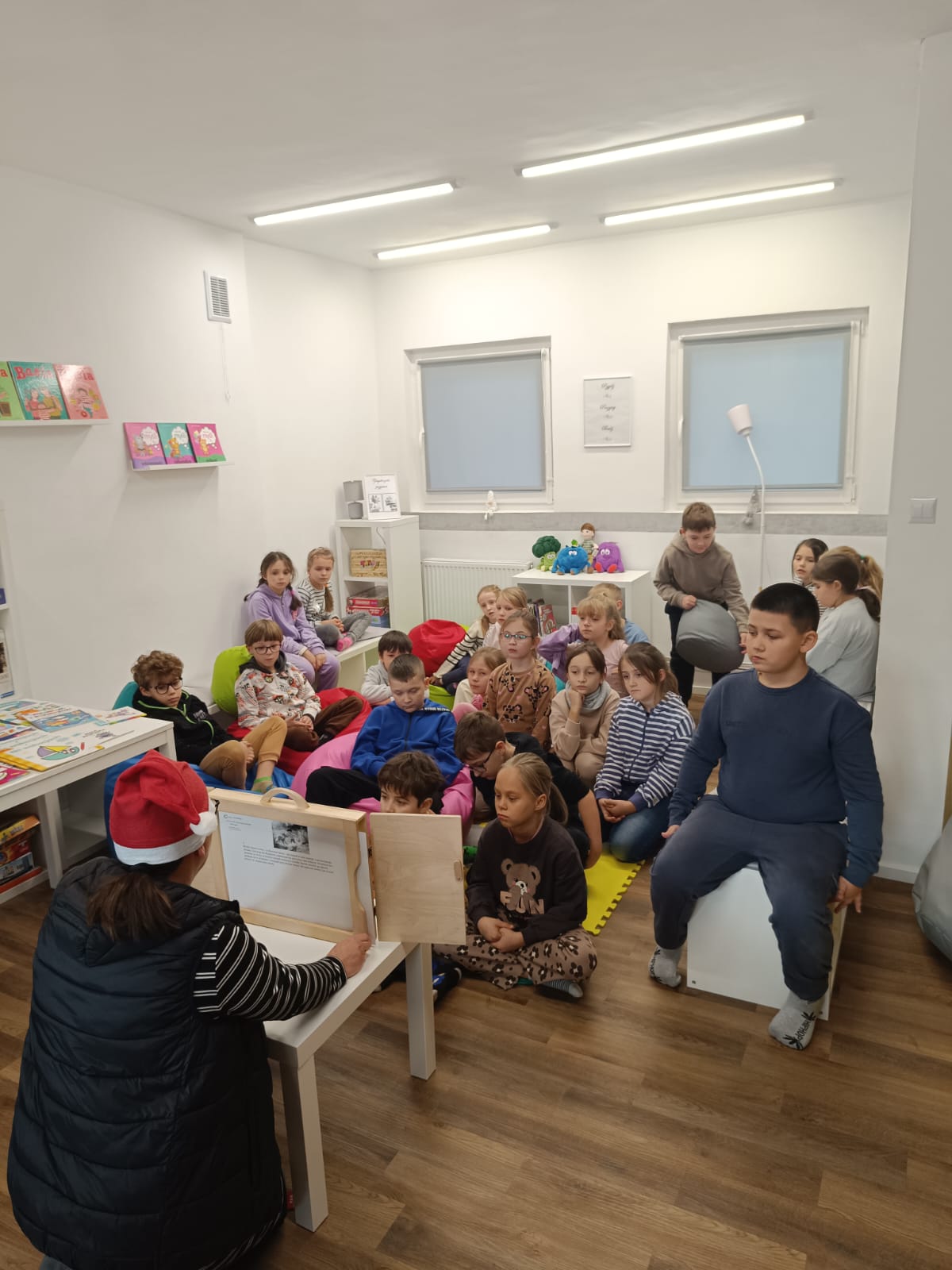Klasa 2b po raz kolejny udowodniła, że wspólne odkrywanie świata książek może być nie tylko wartościowe, lecz także pełne magii. Podczas wizyty w bibliotece szkolnej uczniowie uczestniczyli w wyjątkowym teatrzyku kamishibai. Tym razem obejrzeli pełną uroku opowieść „Jelonek Lucek i sanie Świętego Mikołaja”.