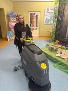 To nowoczesne urządzenie znacząco usprawni codzienne dbanie o czystość w naszej placówce. Szorowarka skutecznie myje i osusza podłogi, dzięki czemu korytarze, sale lekcyjne oraz inne pomieszczenia będą jeszcze czystsze i bezpieczniejsze dla uczniów oraz pracowników.🫧🧹