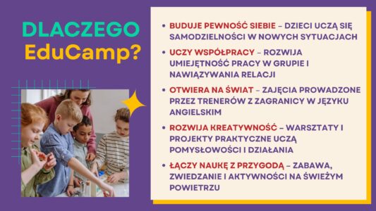 👉 W skrócie: Educamp to intensywny trening kompetencji przyszłości podany w formie, którą dzieci uwielbiają! 🎈🎈