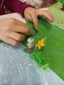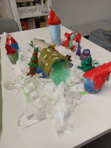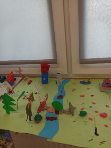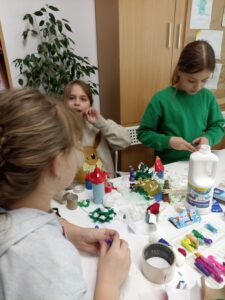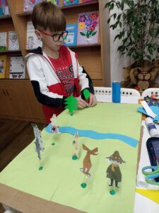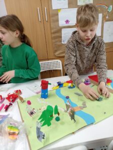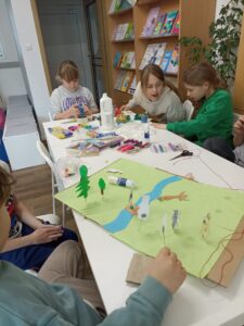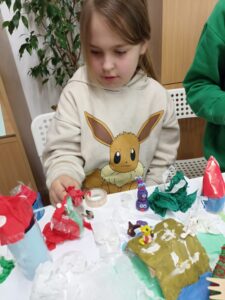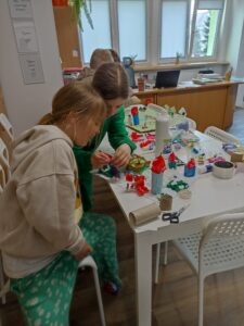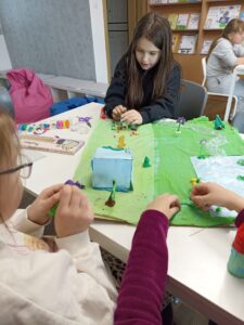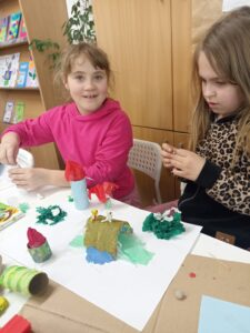 Dużo radości przyniosła także twórcza aktywność. Uczestnicy projektu, działając w grupach, stworzyli trzy przestrzenne makiety Doliny Muminków. Każda z nich ukazywała to miejsce w innej odsłonie – pełnej zieleni i słońca, letniej i pogodnej, a także otulonej zimową ciszą i śniegiem.