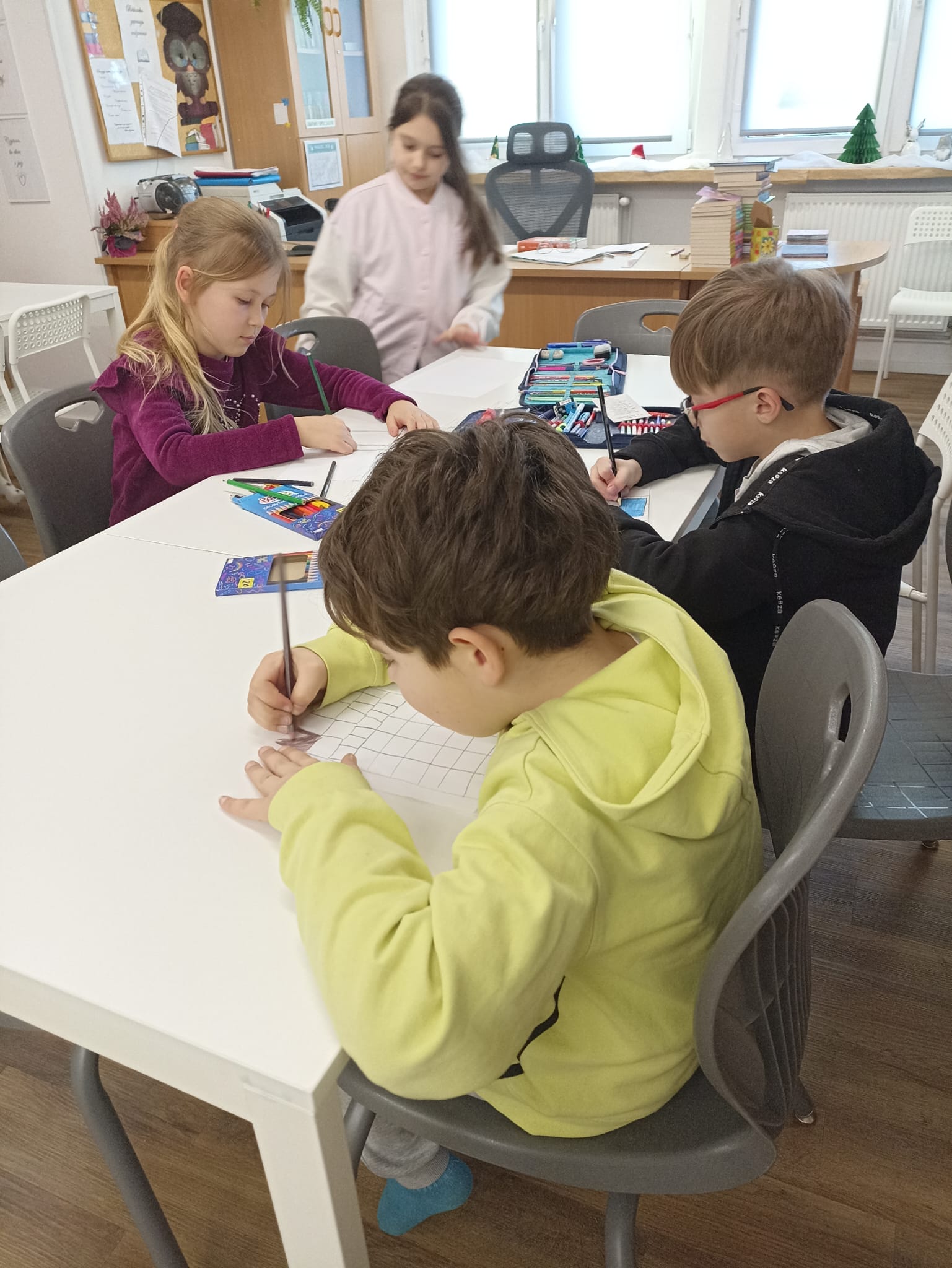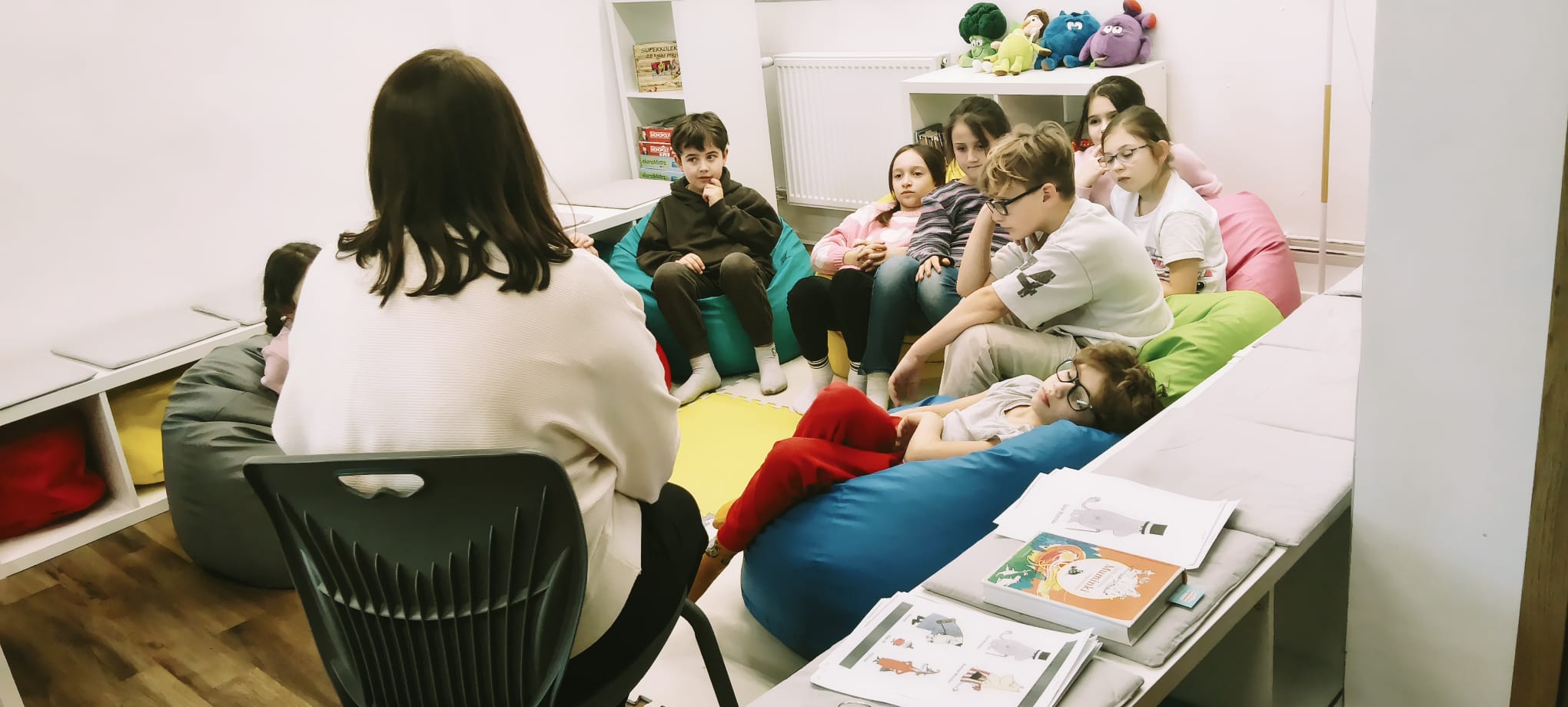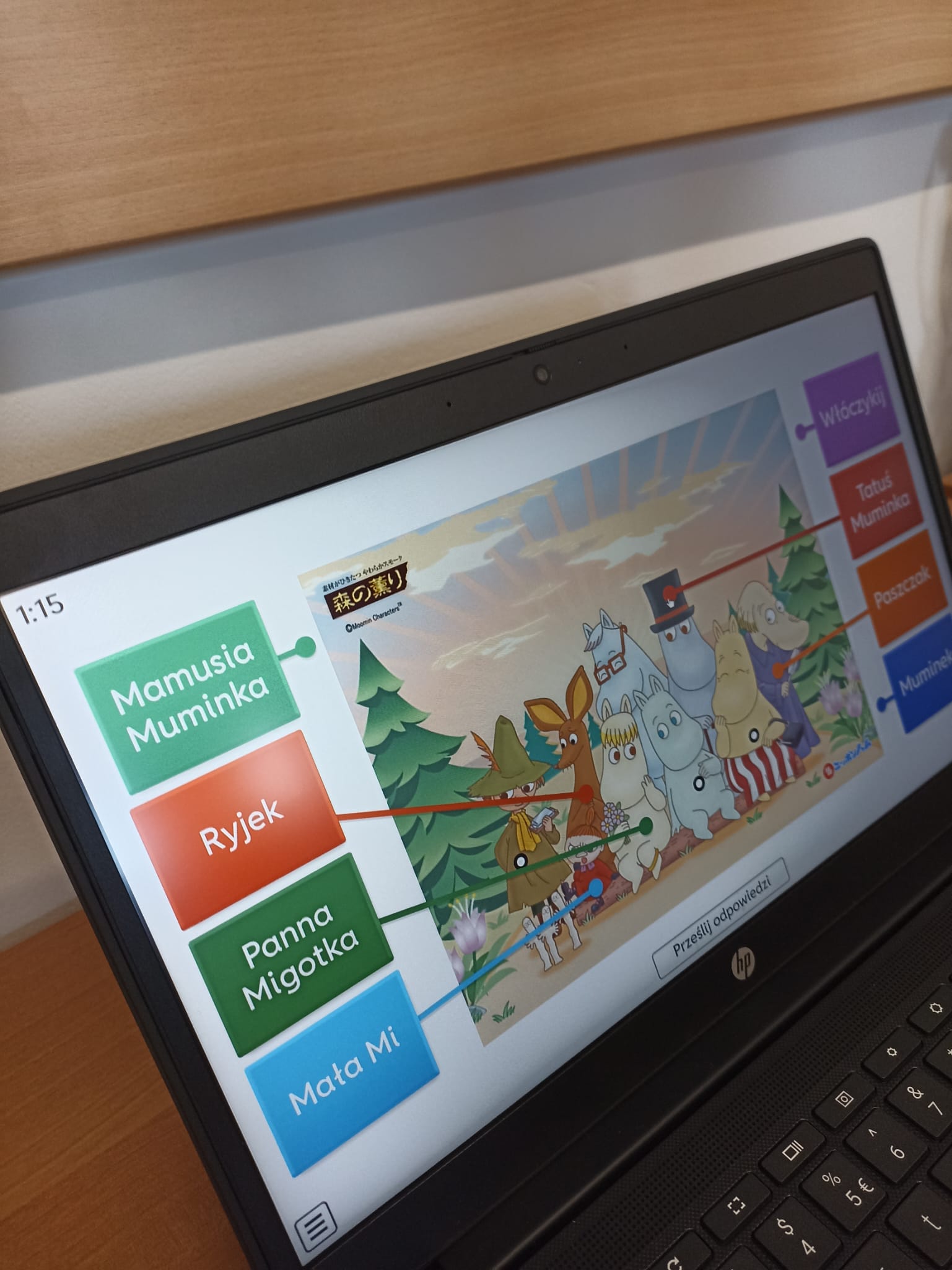 Podczas jednego ze spotkań uczestnicy zajęć poznali również sylwetkę autorki. Jej życie i twórczość zostały przedstawione w formie prezentacji multimedialnej, dzięki której dzieci dowiedziały się, jak powstały opowieści o Muminkach. Zdobytą wiedzę utrwalali następnie, rozwiązując interaktywne zadania przygotowane na platformie Wordwall.