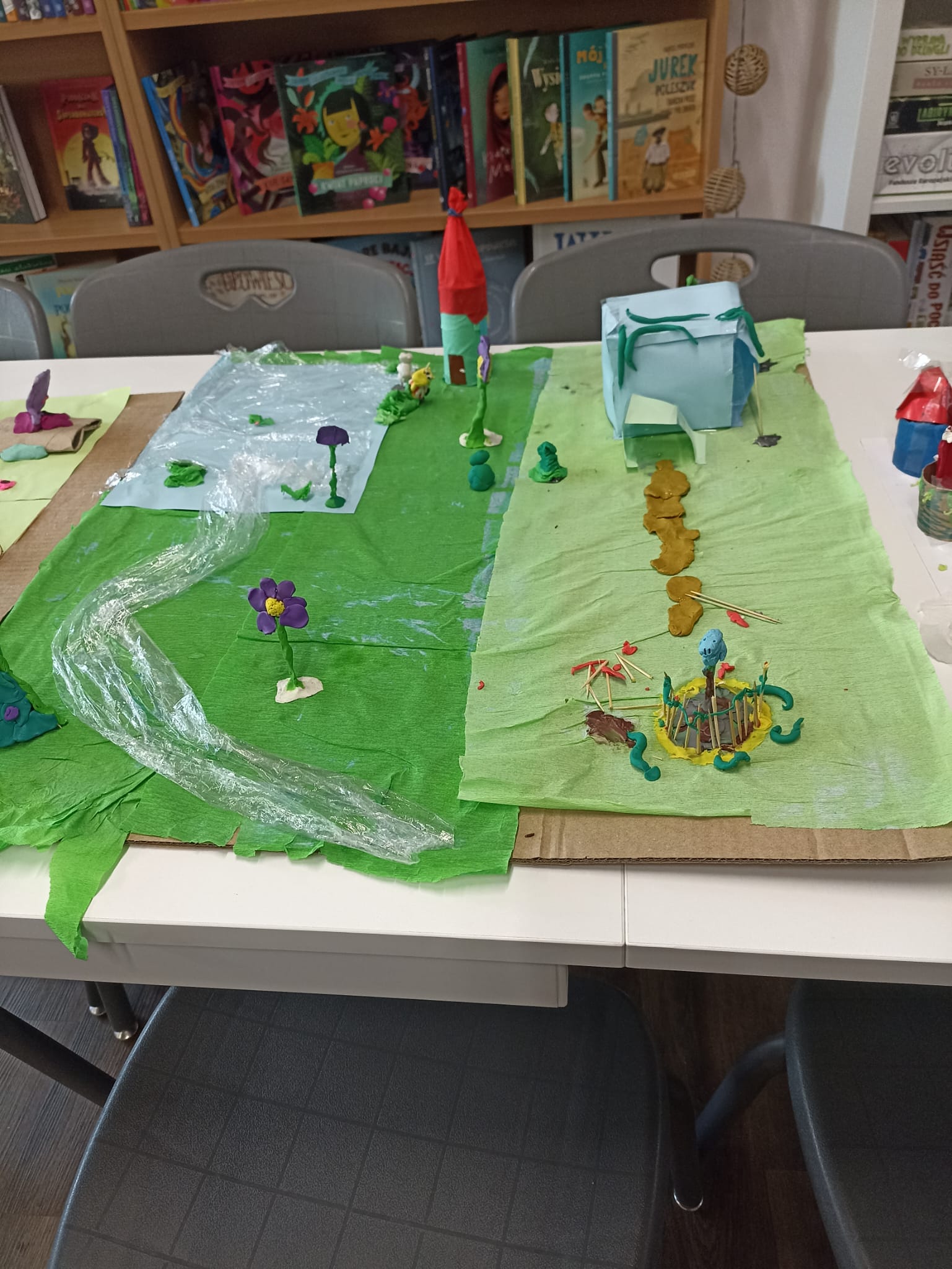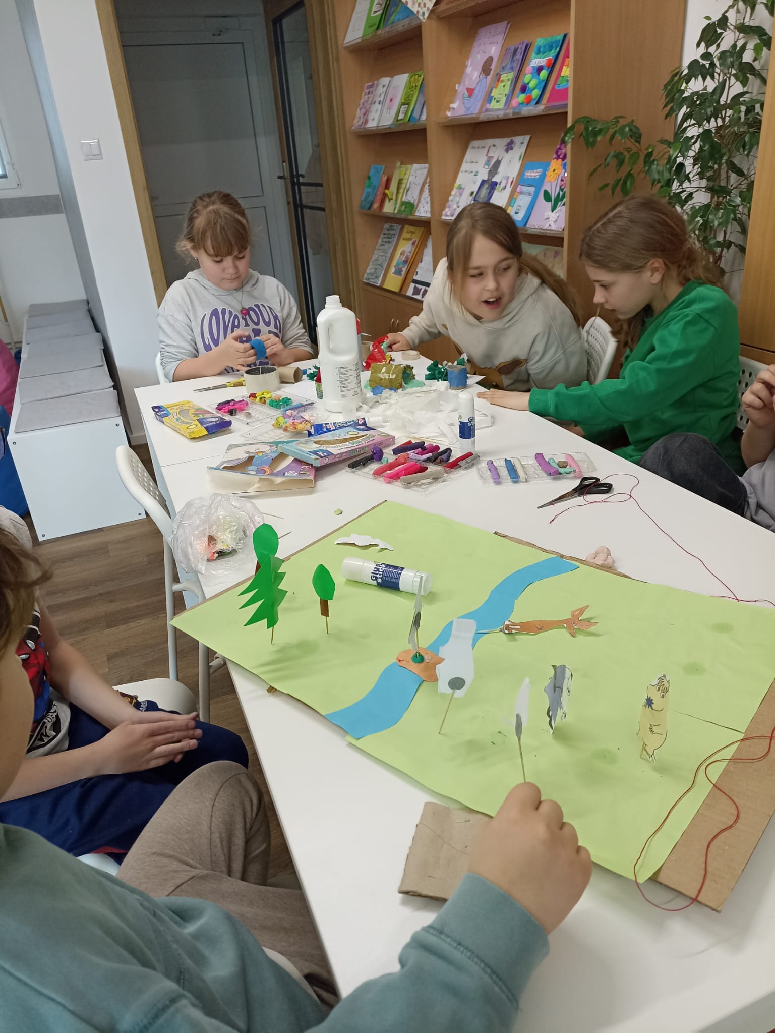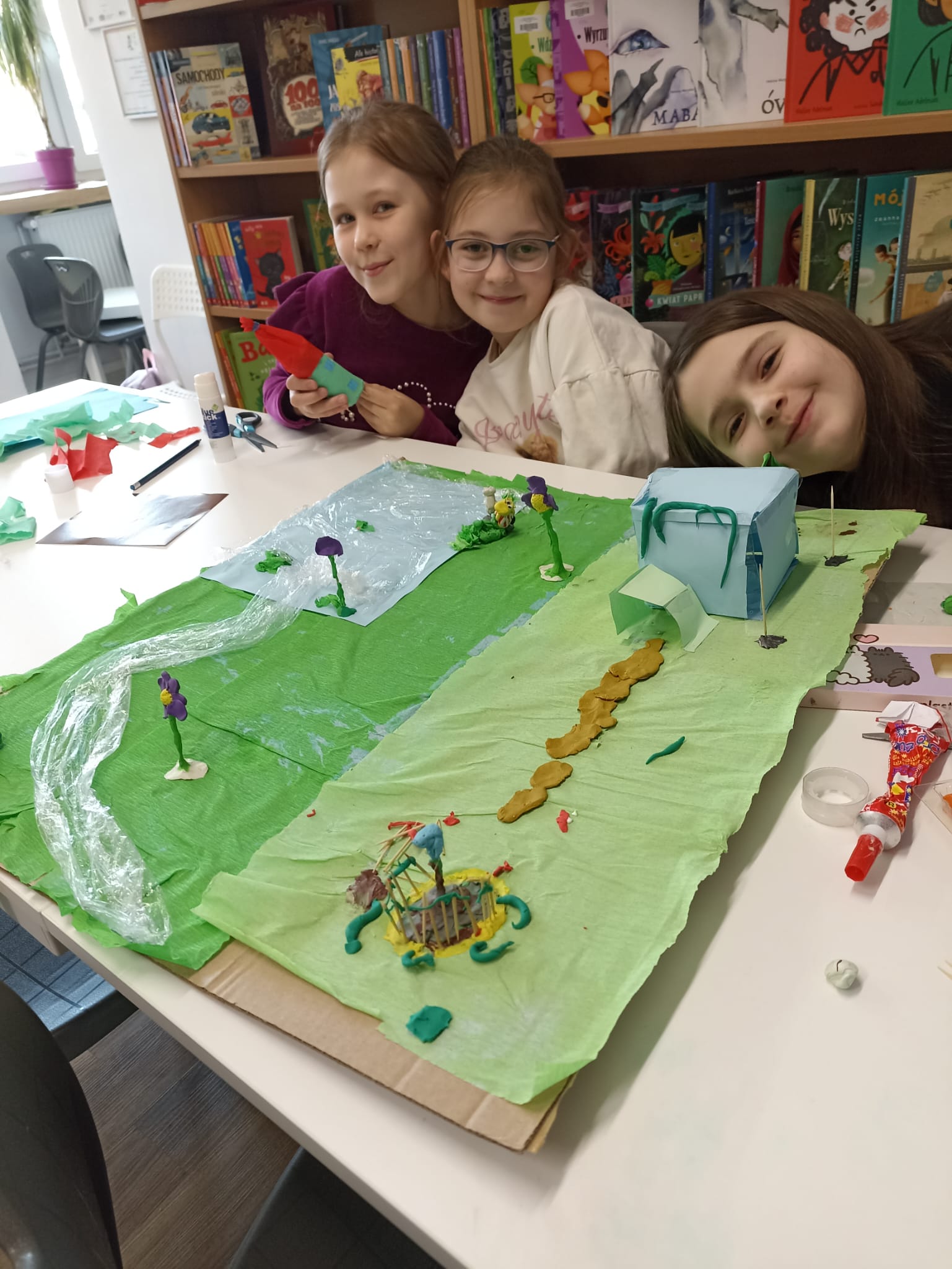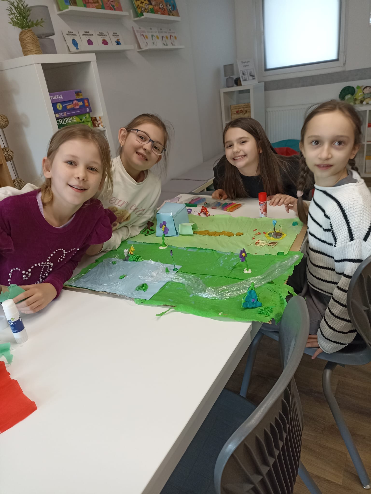 Dużo radości przyniosła także twórcza aktywność. Uczestnicy projektu, działając w grupach, stworzyli trzy przestrzenne makiety Doliny Muminków. Każda z nich ukazywała to miejsce w innej odsłonie – pełnej zieleni i słońca, letniej i pogodnej, a także otulonej zimową ciszą i śniegiem.