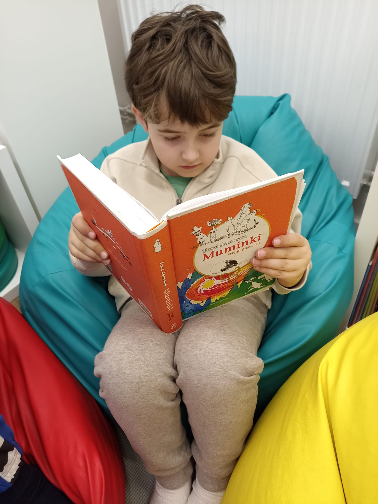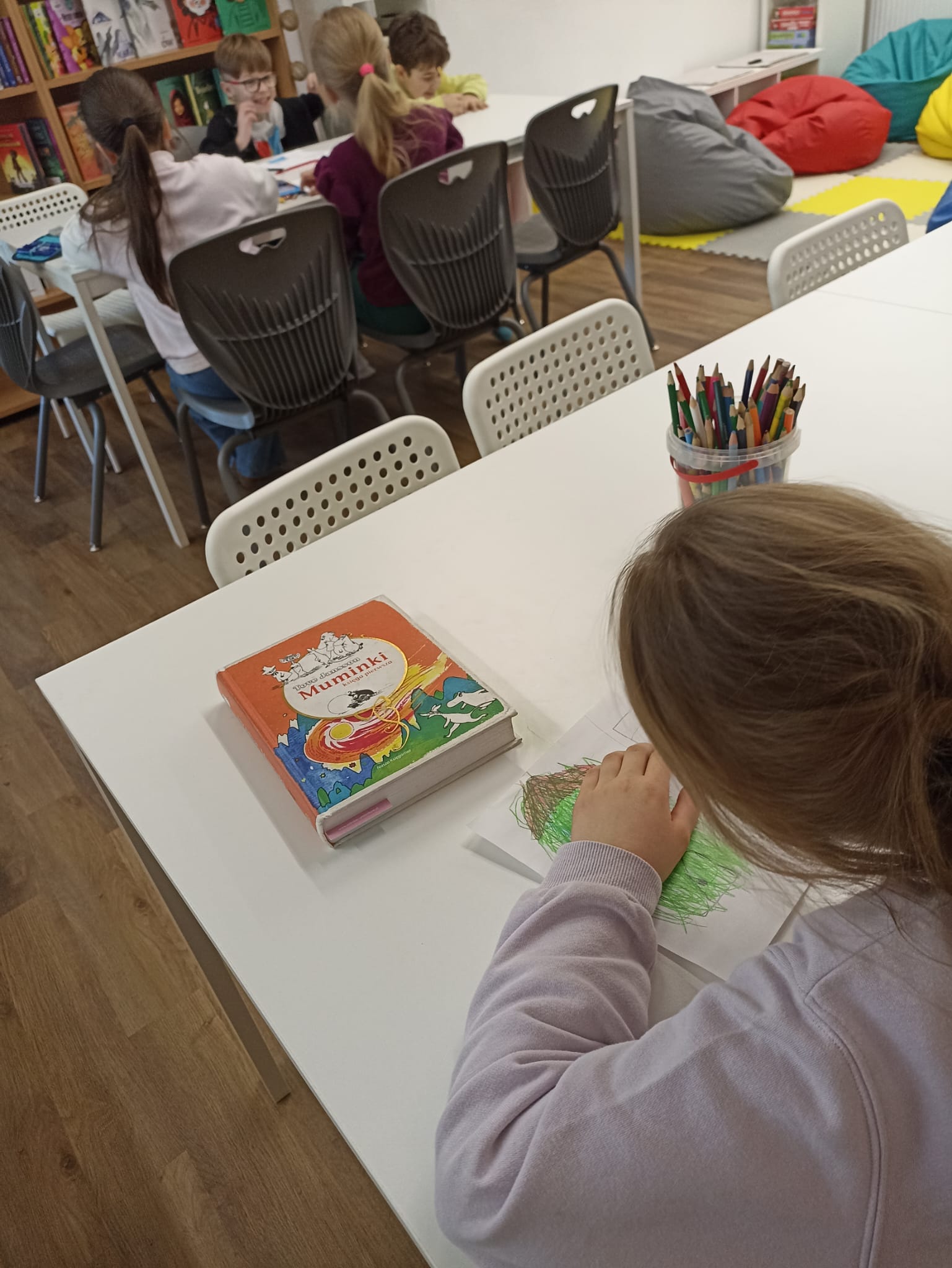 W literacką podróż do świata Muminków wyruszyły świetliczaki z klas 2b i 3b – uczestnicy cyklicznych spotkań czytelniczych organizowanych w bibliotece. Podczas siedmiu spotkań młodzi czytelnicy odkrywali historie mieszkańców Doliny Muminków. Opowieści Tove Jansson stały się punktem wyjścia do rozmów o relacjach, codziennych doświadczeniach i uczuciach towarzyszących bohaterom. Czytaliśmy fragmenty książek i zastanawialiśmy się, co w tych historiach jest najważniejsze: przyjaźń, rodzina, akceptacja, odwaga oraz sposoby radzenia sobie z lękiem i niepewnością. Rozmawialiśmy także o tym, jak ważna jest uważność na innych i prawo do bycia sobą.