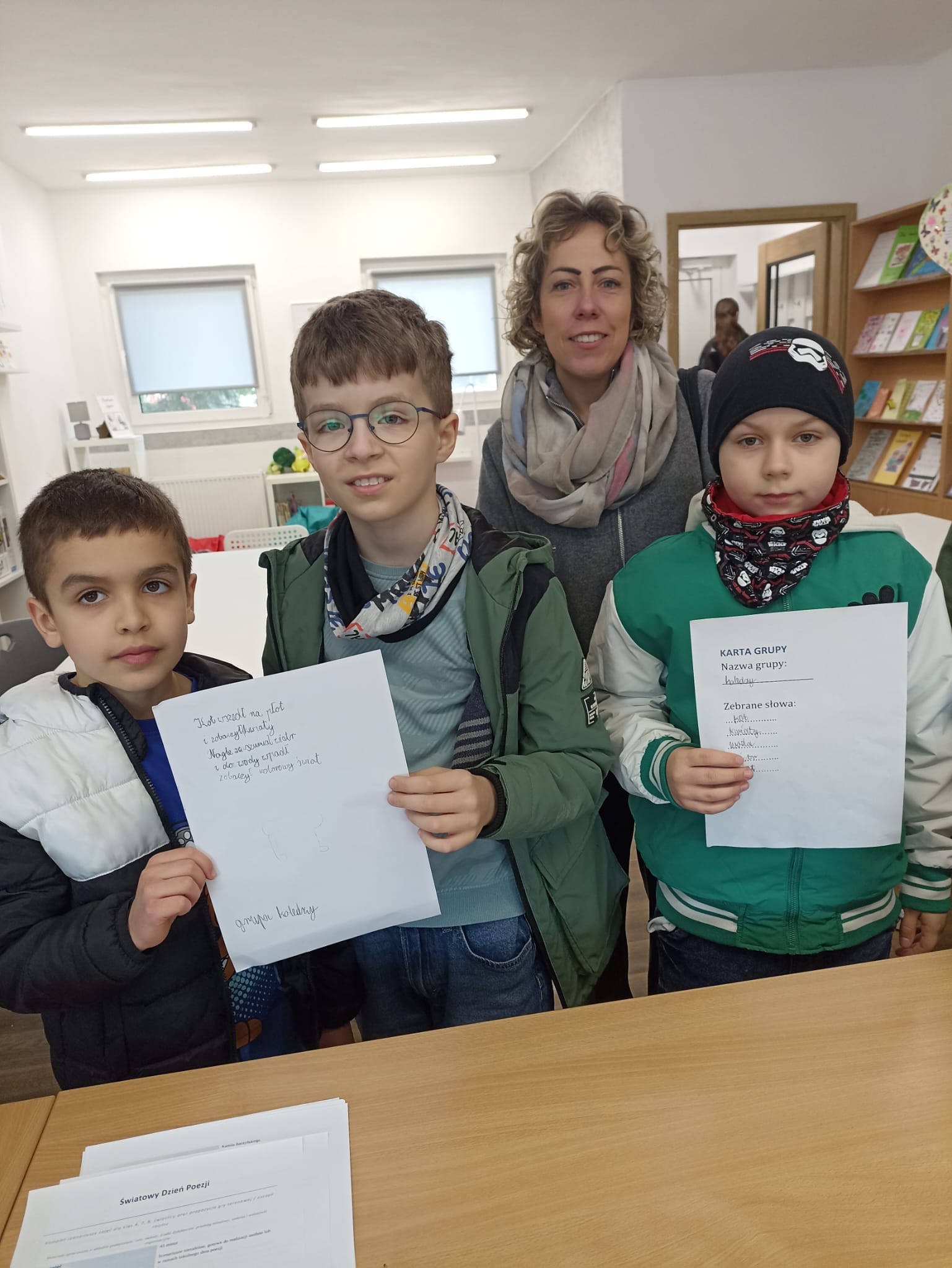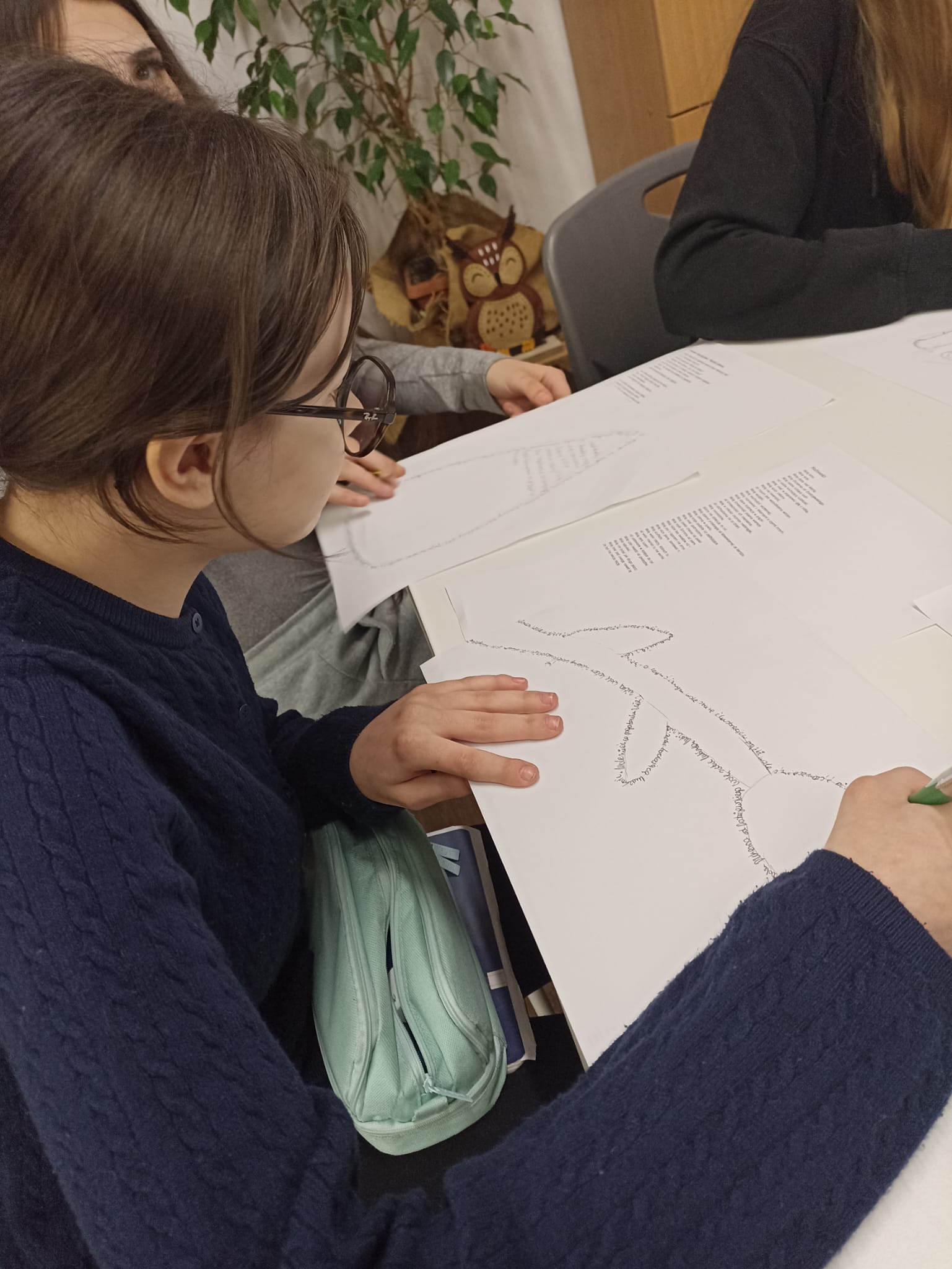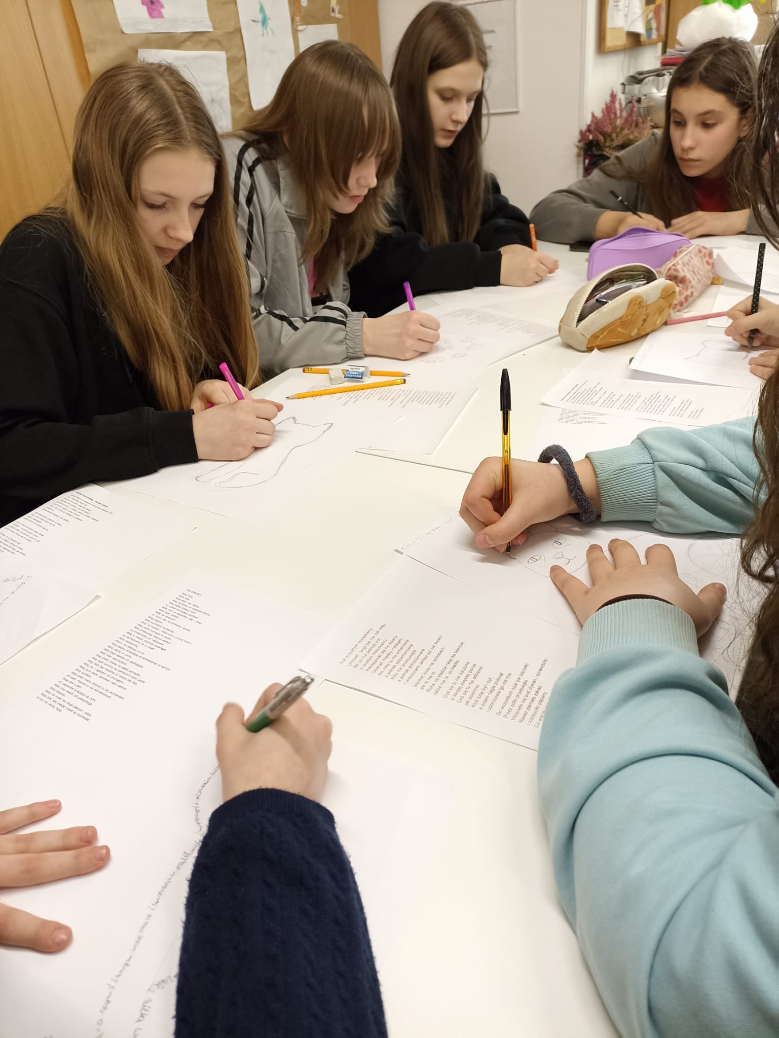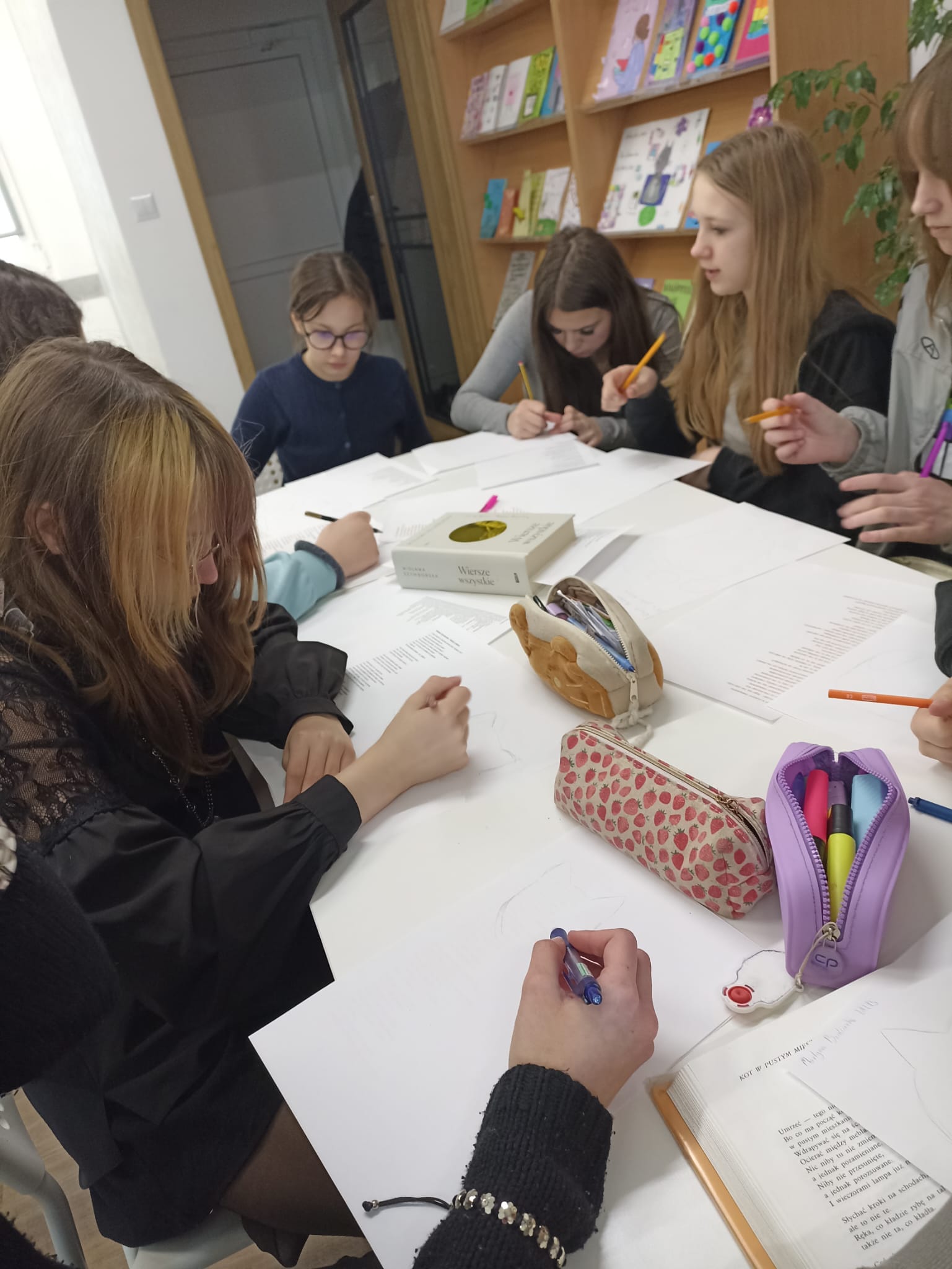 Uczniowie klas 7b, 8b oraz 4a wzięli udział w warsztatach poetyckich, podczas których odkrywali, że wiersz to nie tylko zapisane zdania, ale również emocje, wyobraźnia i własna interpretacja.