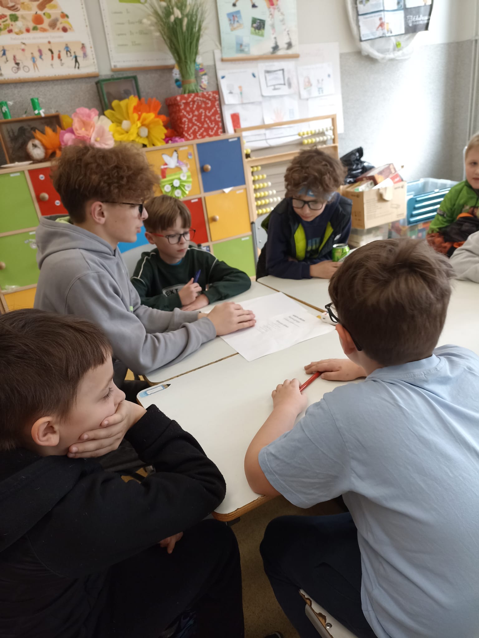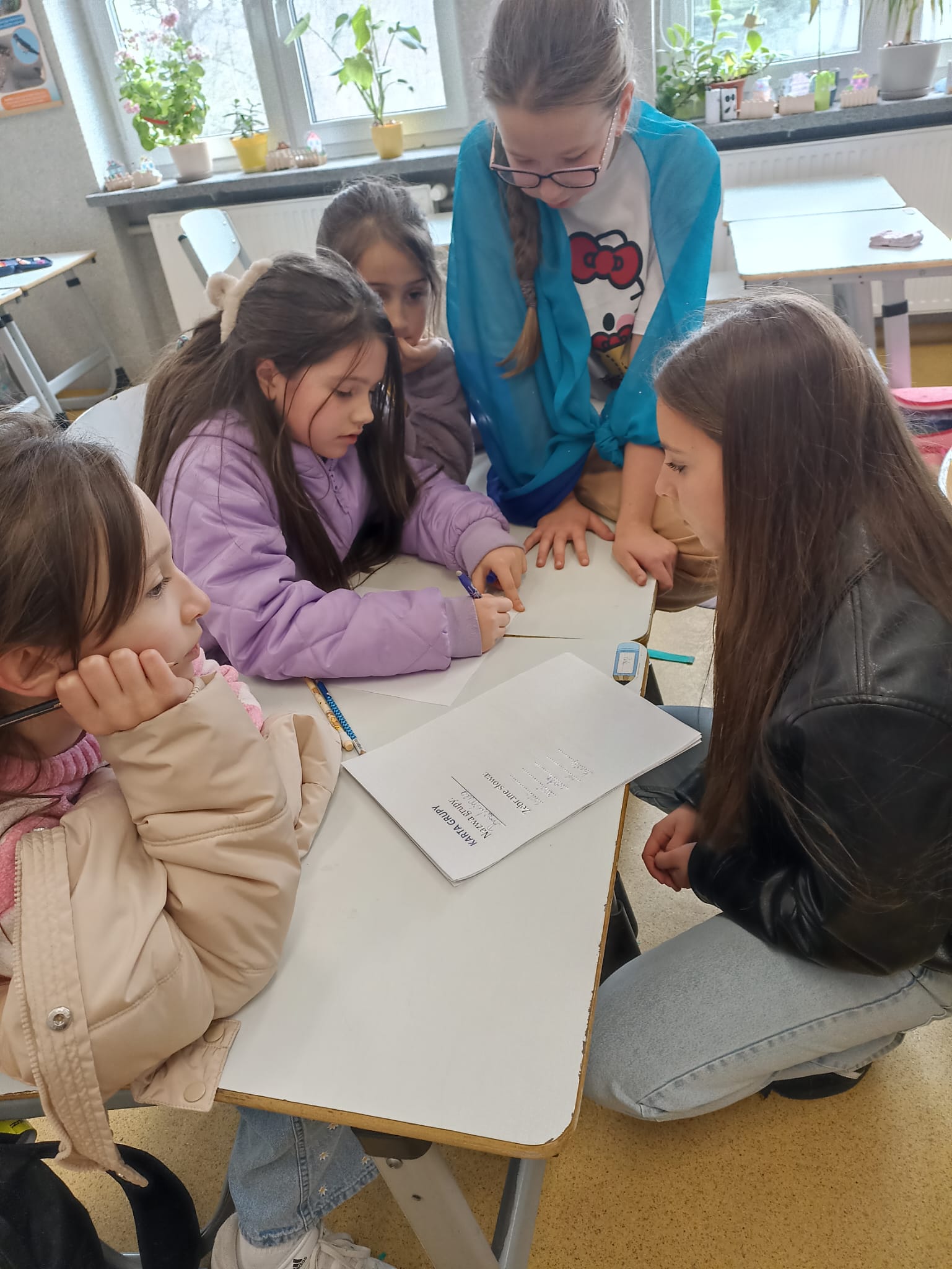 🔹 Klasa 4a przekonała się, że poezja może być także świetną zabawą — uczniowie bawili się rymem, słowem i wyobraźnią, tworząc własne, pierwsze wiersze.