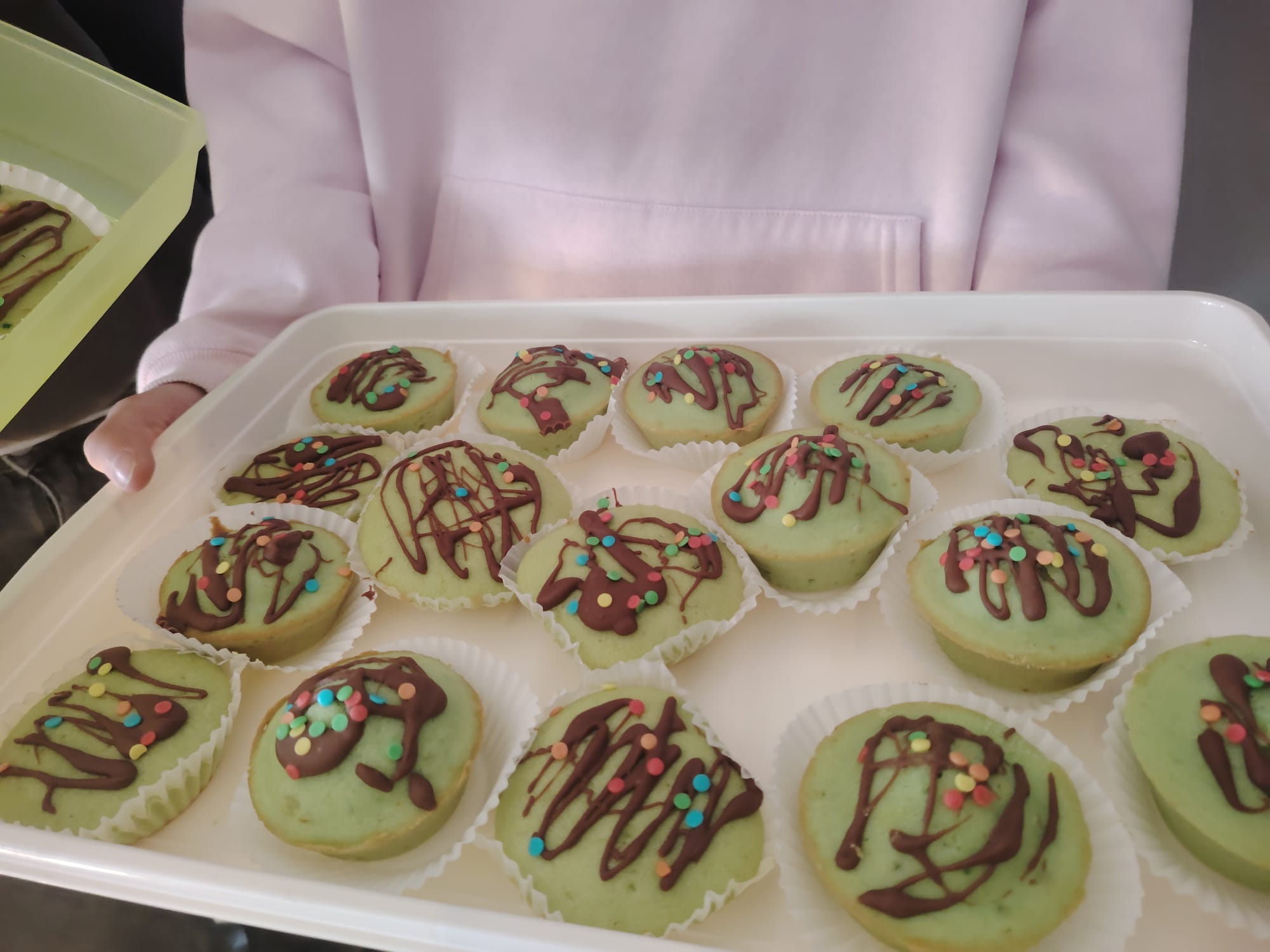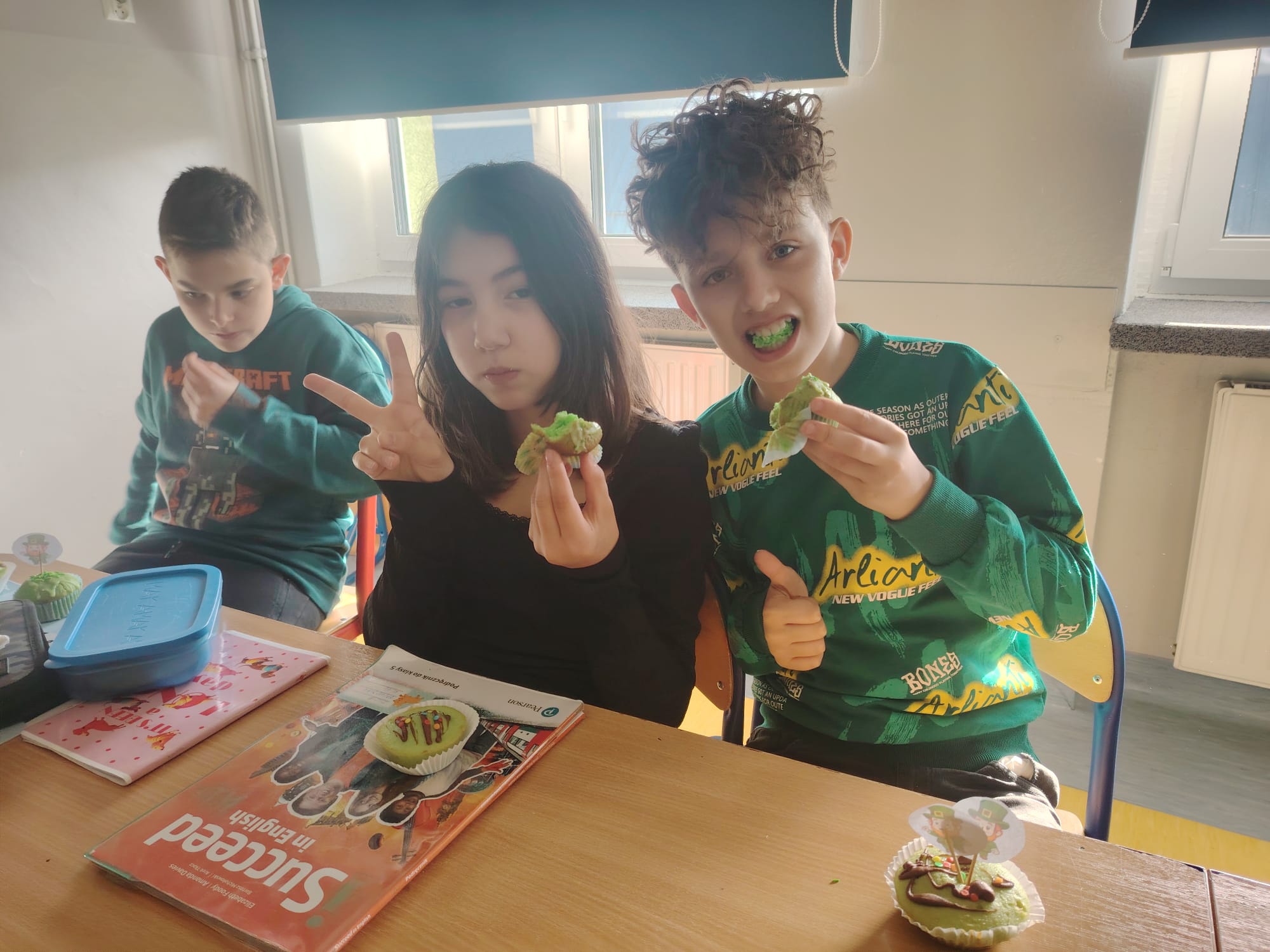 Nie samym duchem żyje człowiek, dlatego nasi zdolni uczniowie z kl Vc zadbali o oprawę kulinarną. Dzisiaj królowały zielone wypieki! Domowe babeczki z pistacjowym kremem, zielone owoce i fantazyjne przekąski znikały w mgnieniu oka. Trzeba przyznać – zielone jedzenie smakuje wyjątkowo dobrze!