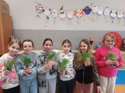 Efekty ich pracy były wspaniałe. Piękny i zielony owies trafił do domów uczniów jako wyjątkowa dekoracja na stół świąteczny. 🌿To była lekcja, która na długo pozostanie w pamięci uczniów – pełna radości, odkryć i zielonej inspiracji.