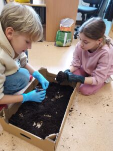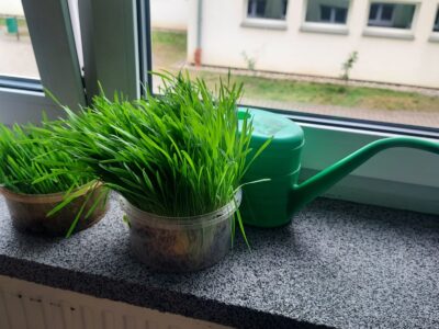 W klasie 3b na zajęciach przyrody było naprawdę zielono! 🌱 Uczniowie samodzielnie zasiali owies, a następnie z dużym zaangażowaniem obserwowali jego wzrost i dbali o rośliny każdego dnia.