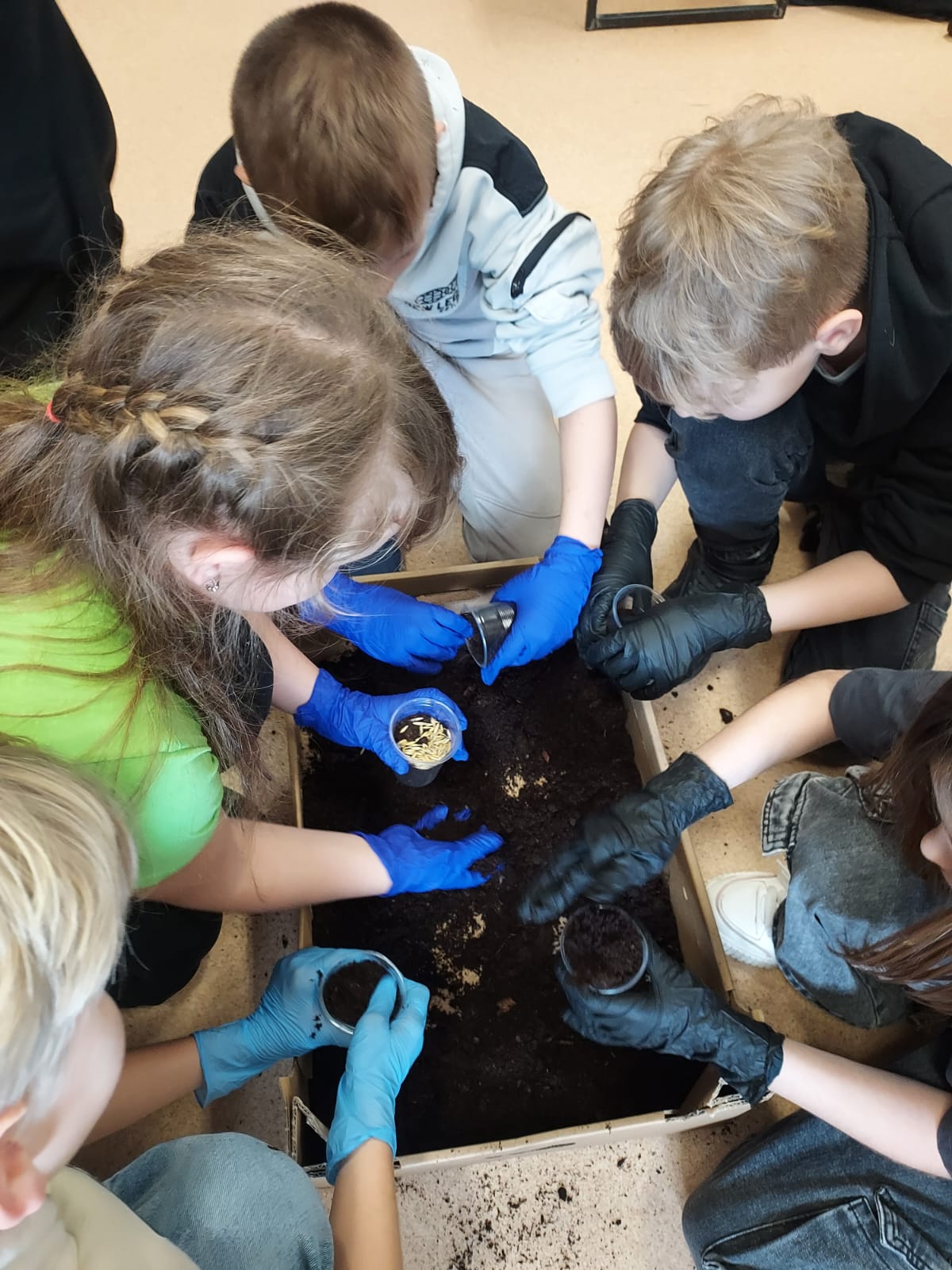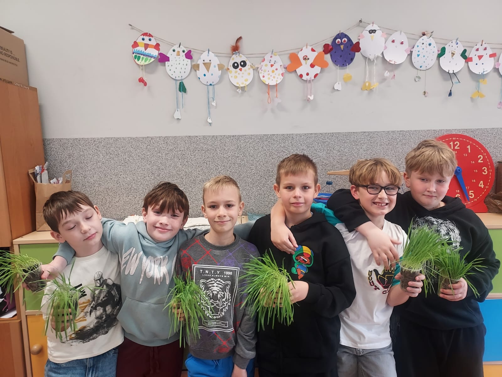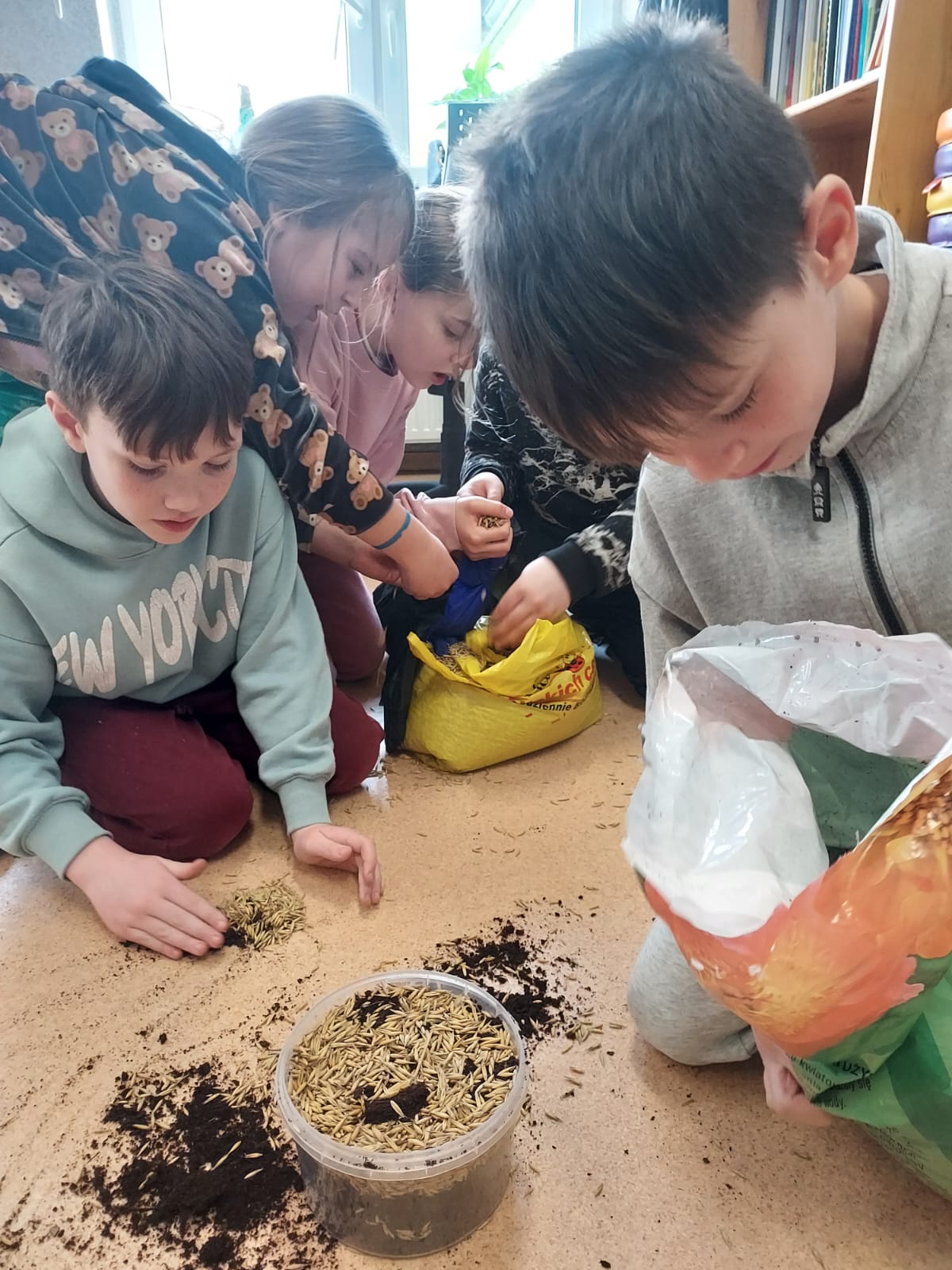 W klasie 3b na zajęciach przyrody było naprawdę zielono! 🌱 Uczniowie samodzielnie zasiali owies, a następnie z dużym zaangażowaniem obserwowali jego wzrost i dbali o rośliny każdego dnia.