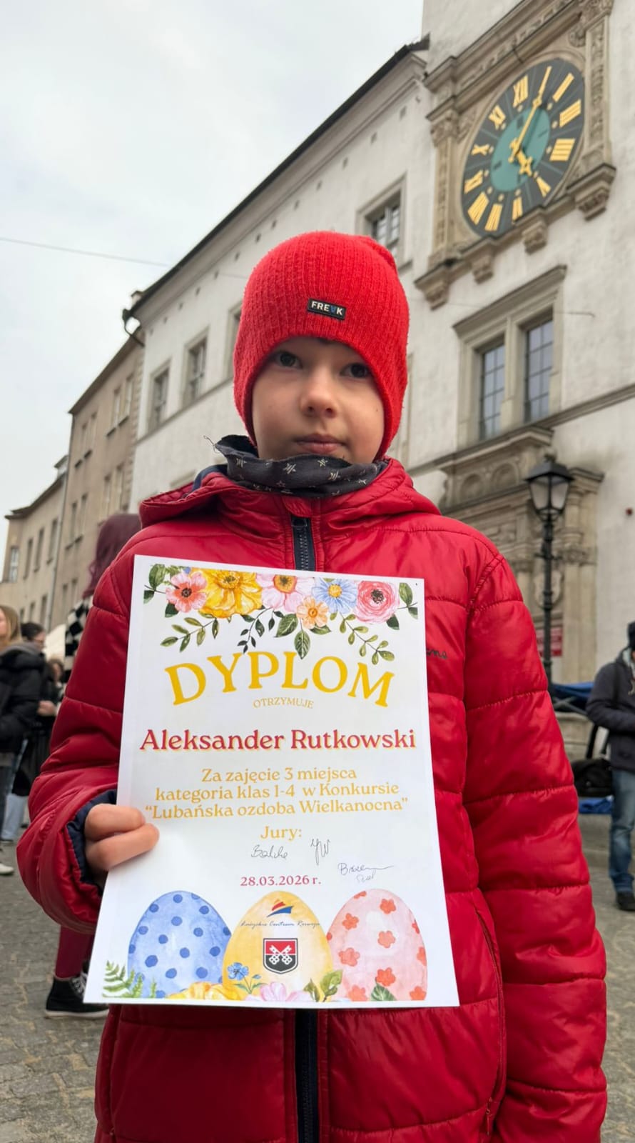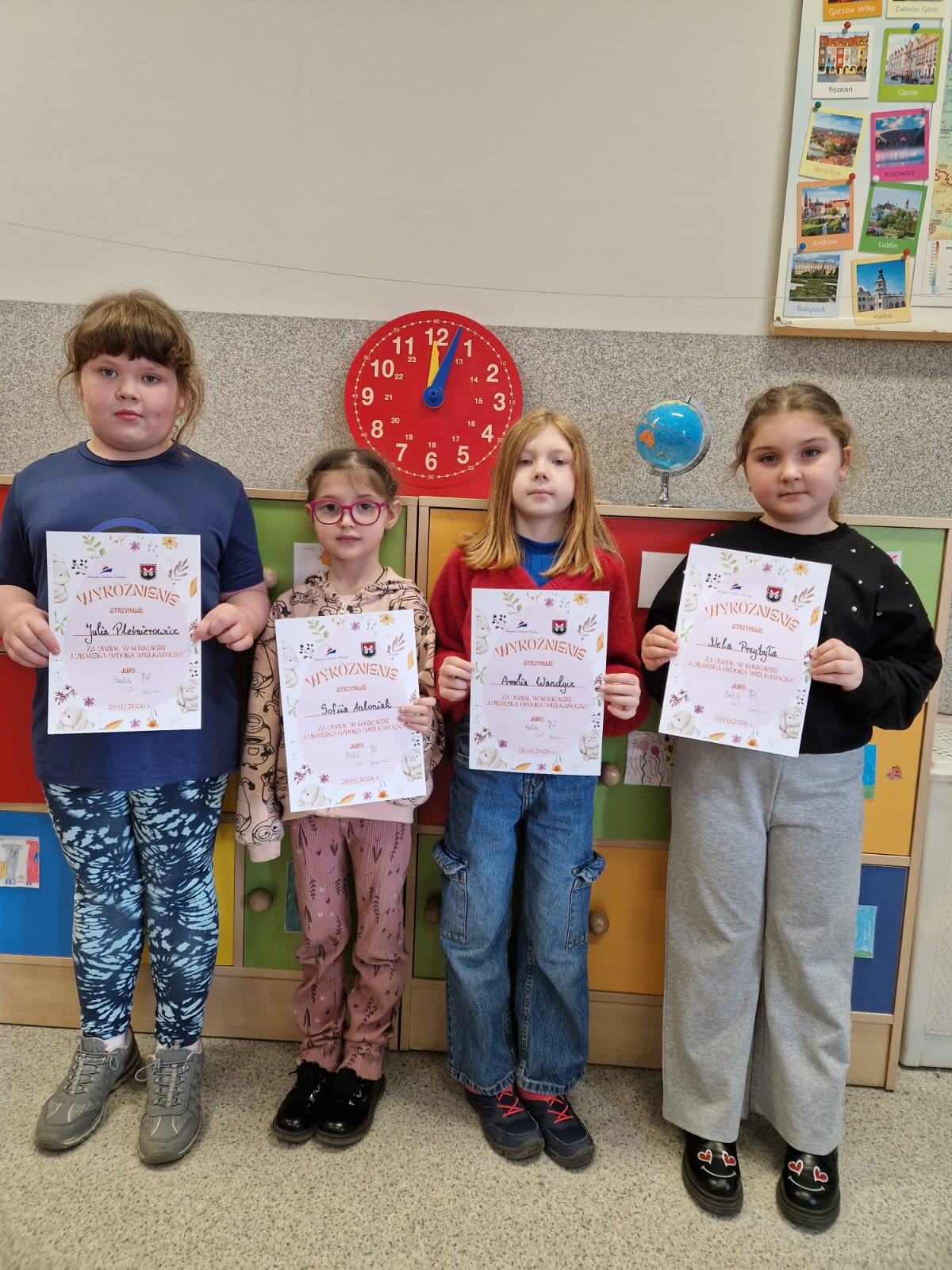 W konkursie wzięli udział uczniowie z naszej szkoły, którzy wykonali ozdoby wielkanocne nawiązujące do elementów architektury oraz do symboli naszego miasta. Zwycięzcy konkursu otrzymali dyplomy oraz nagrody rzeczowe. Uroczystego wręczenia nagród oraz wyróżnień dokonali Burmistrz Lubania oraz Dyrektor Łużyckiego Centrum Rozwoju.