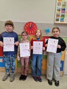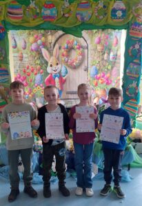 Nikola Teter, kl. I b, Mikołaj Erling, kl. I b, Oskar Leszczyński, kl. I b, Amelia Wandycz, kl. II c, Nela Przybyła, kl. II c, Julia Plesnierowicz, kl. II c, Sofia Antoniak, kl. II c, Nikola Staw, kl. VI c, Mykhailo Antoniak, kl. VII a.