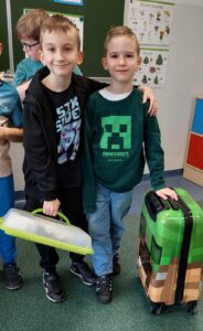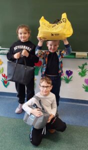 Uczniowie udowodnili, że wyobraźnia nie zna granic – książki i zeszyty podróżowały dziś w koszykach, walizkach, wiadrach, a nawet wózkach zakupowych! Nie zabrakło też naprawdę oryginalnych pomysłów, które wywoływały uśmiech na twarzach zarówno uczniów, jak i nauczycieli .😊