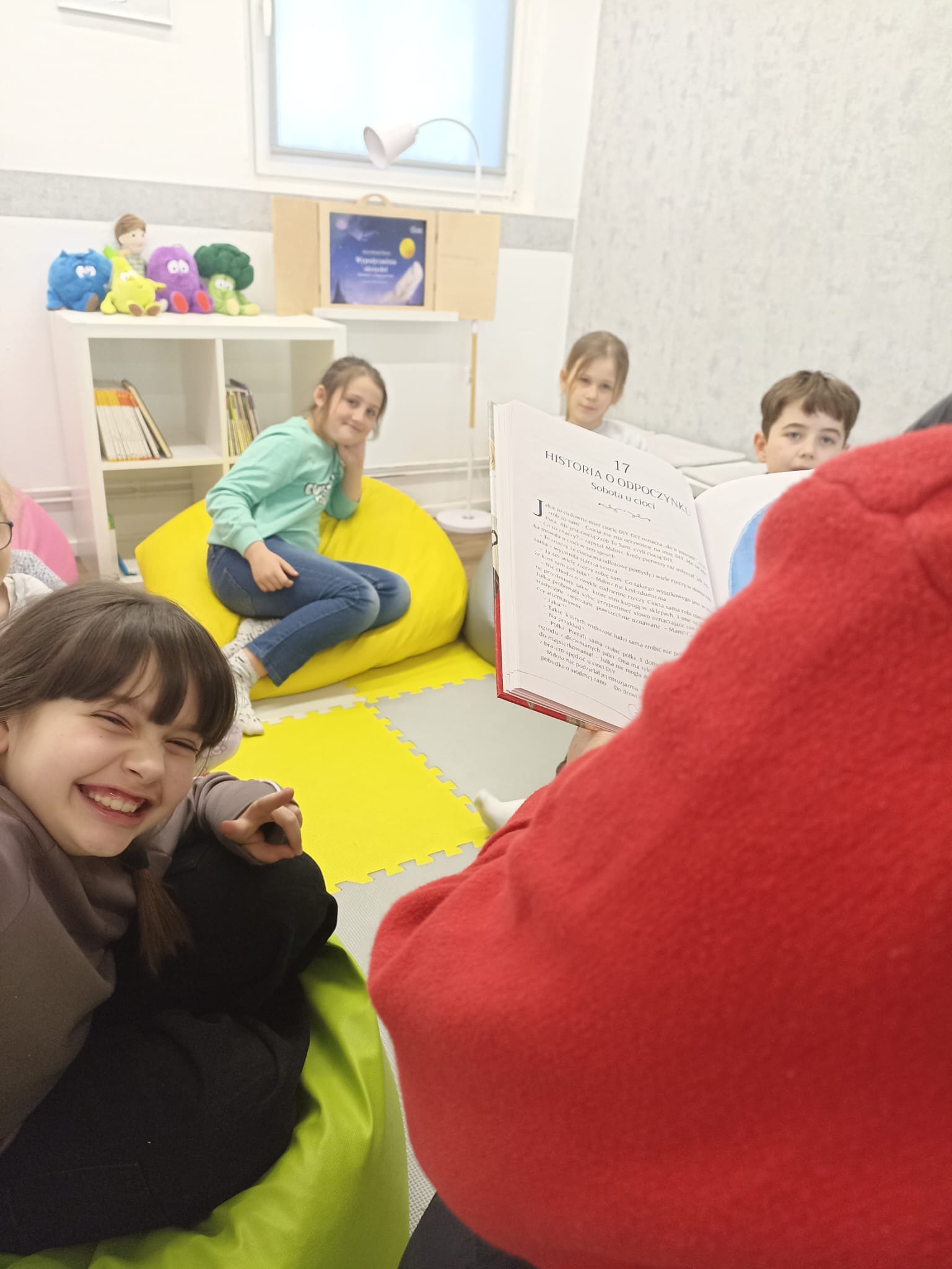 Każda historia stawała się punktem wyjścia do rozmów – dzieci dzieliły się swoimi przemyśleniami, doświadczeniami i pomysłami na to, jak wprowadzać te wartości w życie. Nie zabrakło także chwil zadumy, uśmiechu i wzajemnej inspiracji.