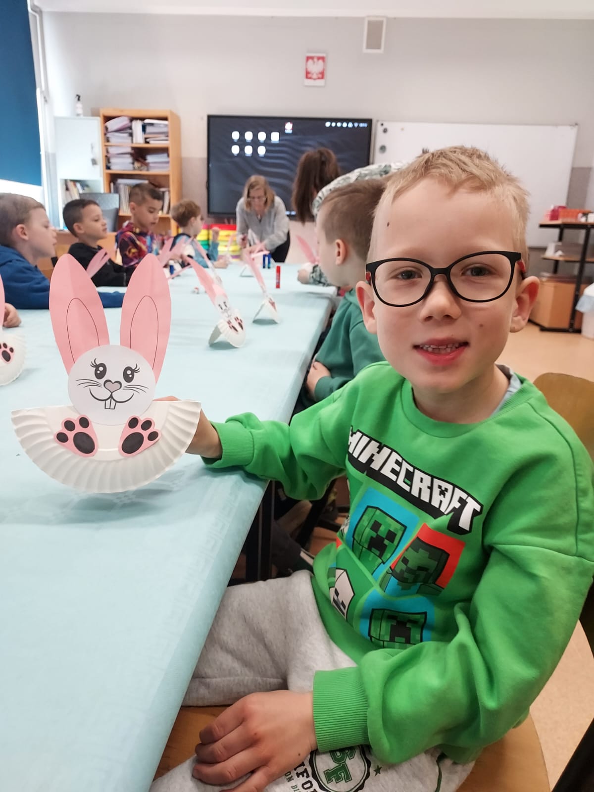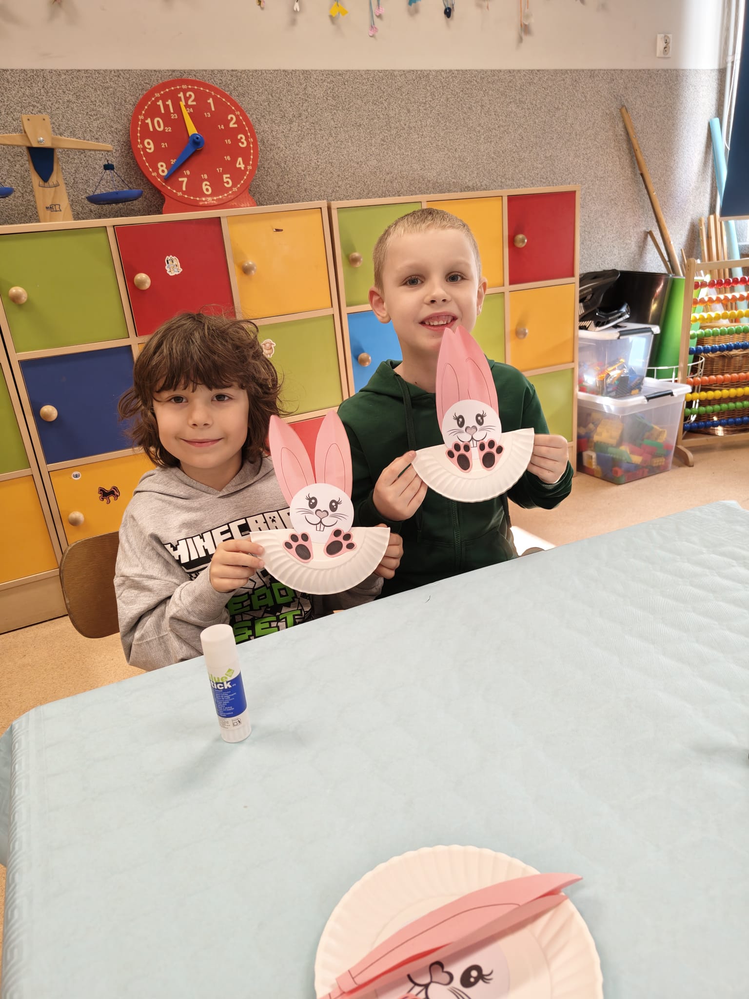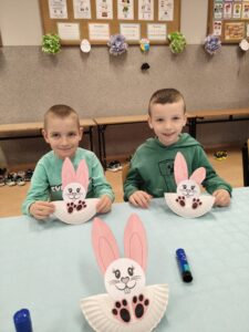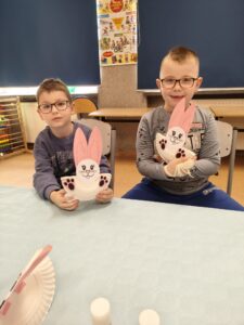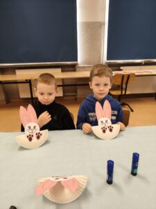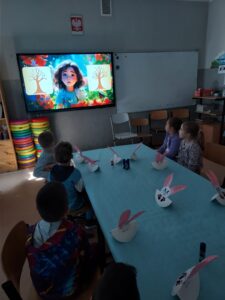 Podczas zajęć technicznych przedszkolaki wykonały kreatywne zajączki 🐰 oraz zmierzyły się z wiosennymi zagadkami, wykazując się przy tym ogromną wiedzą na temat tej pory roku.🌸