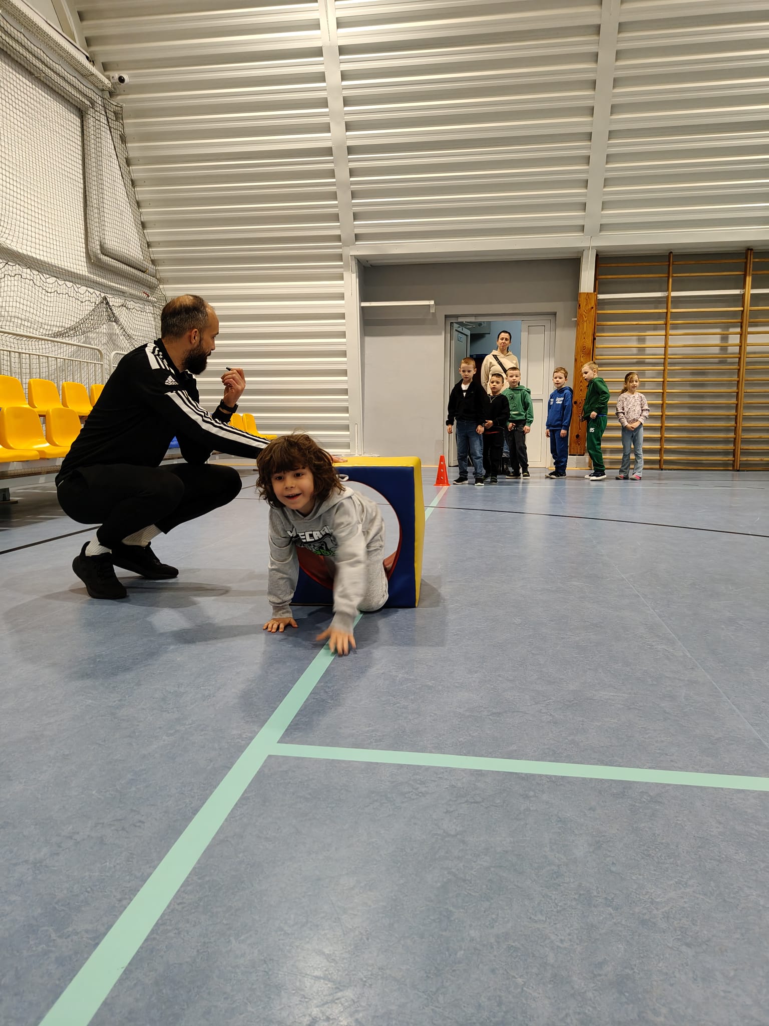 Na zajęciach WF nie zabrakło ruchu i dobrej zabawy! 😊Dzieci pokonały tor przeszkód niczym prawdziwi sportowcy,💪a także spróbowały swoich sił w grach zespołowych.🏐🏀🥅